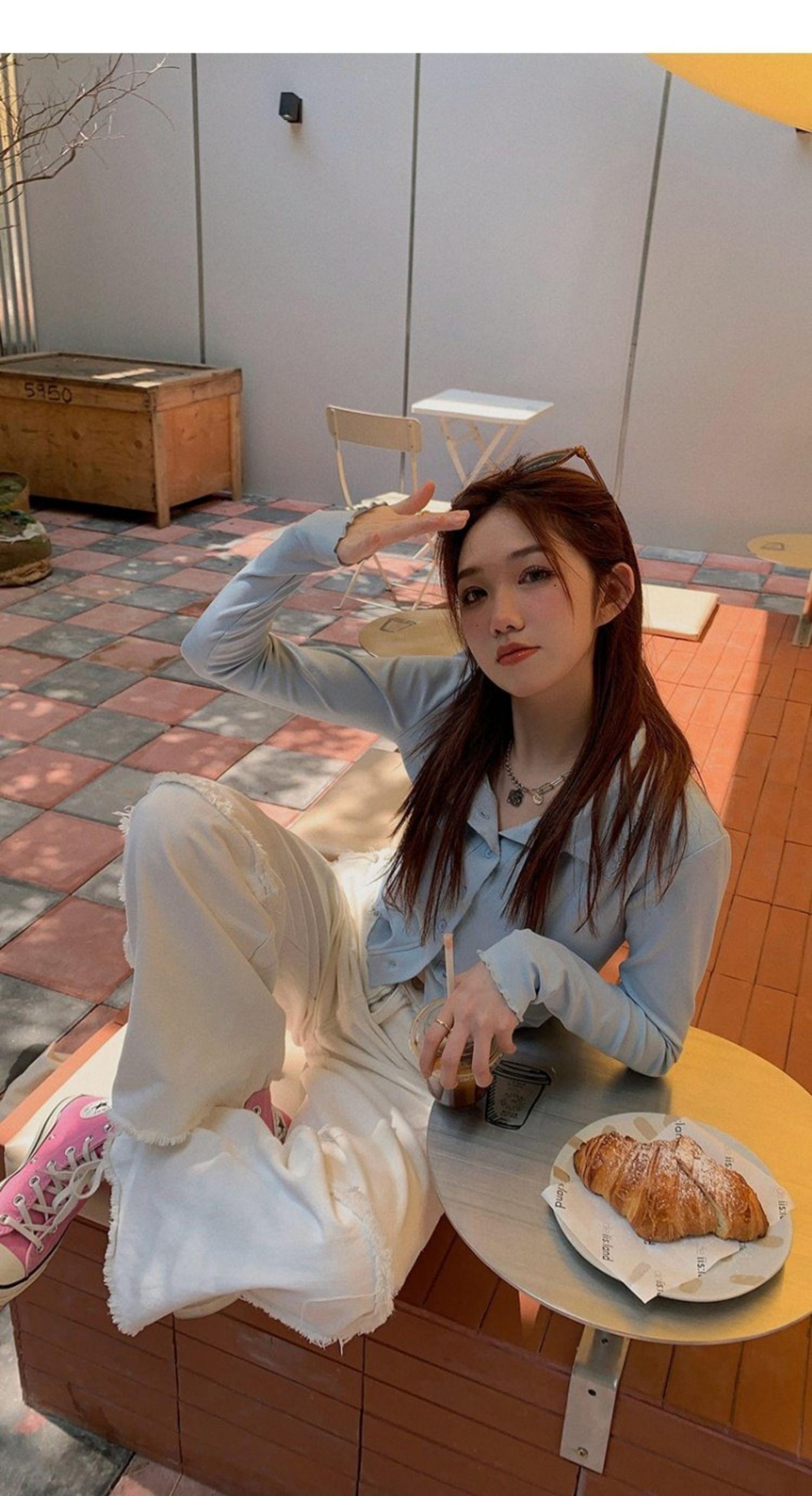 ブルーTシャツ薄手スプリングカジュアルゆったりトップス ロング 春物 長袖 MONROE77646884243