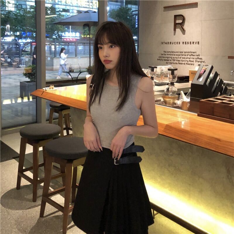 スプリングショート薄手ゆったりシャツ ノースリーブトップス 春物 ピュア MONROE91432480922