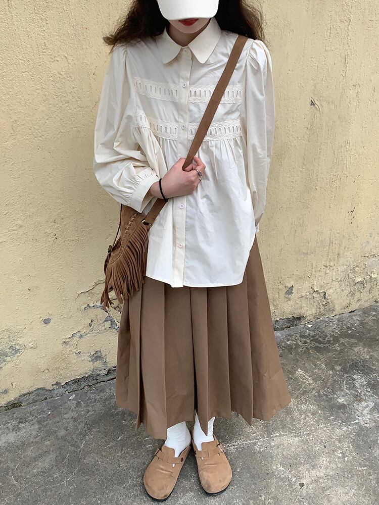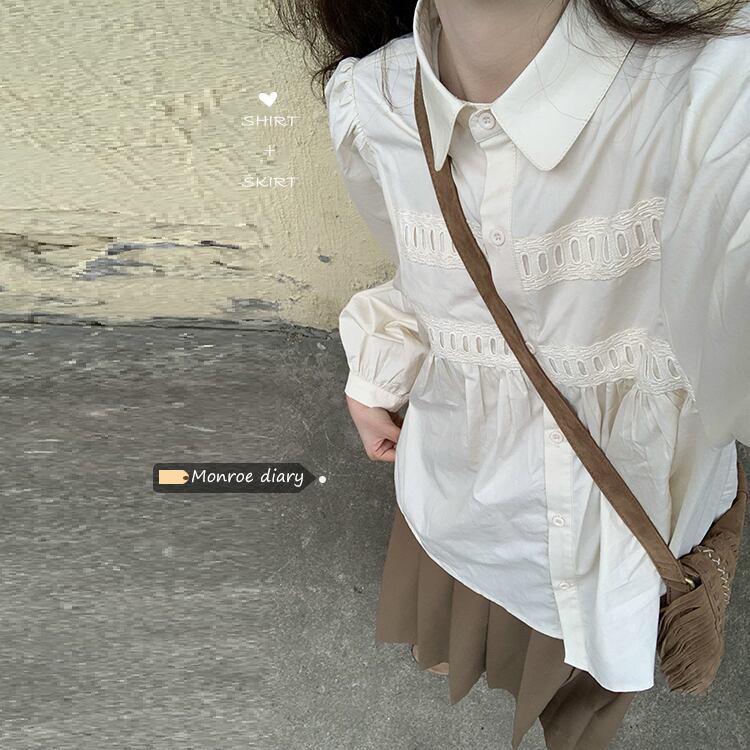 シャツ スプリング秋物スタンダードトップス ロング レトロ 春物 オータム 長袖 MONROE90749761230