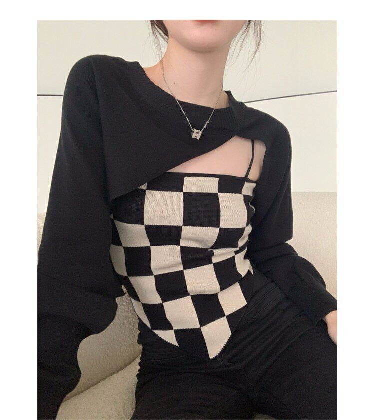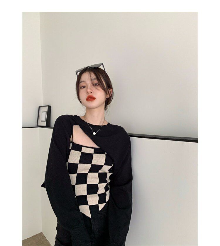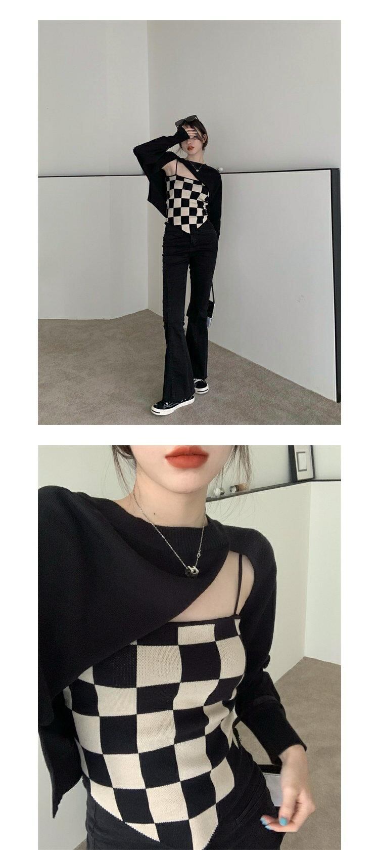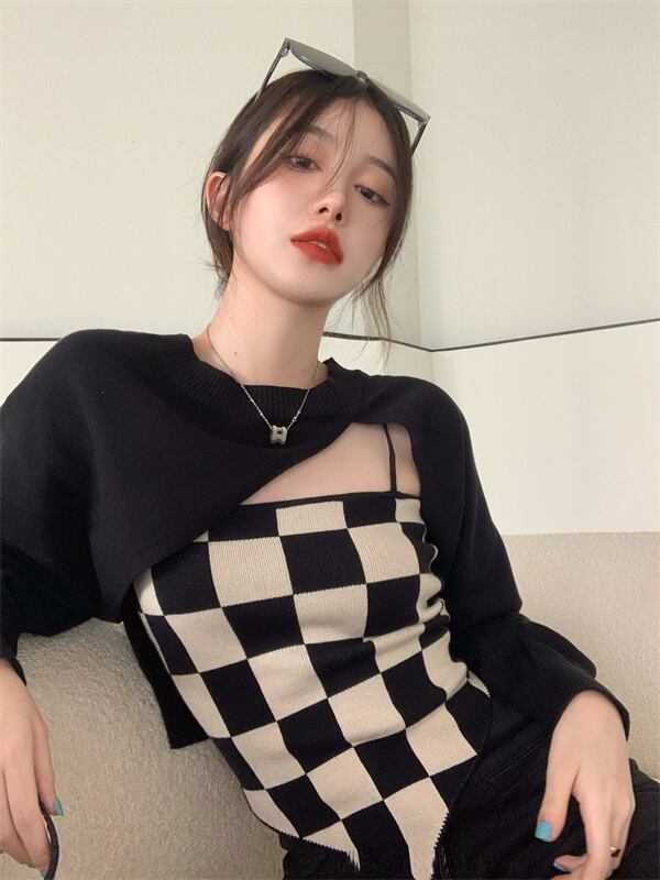 色:アプリコットスリング,黒のブラウス