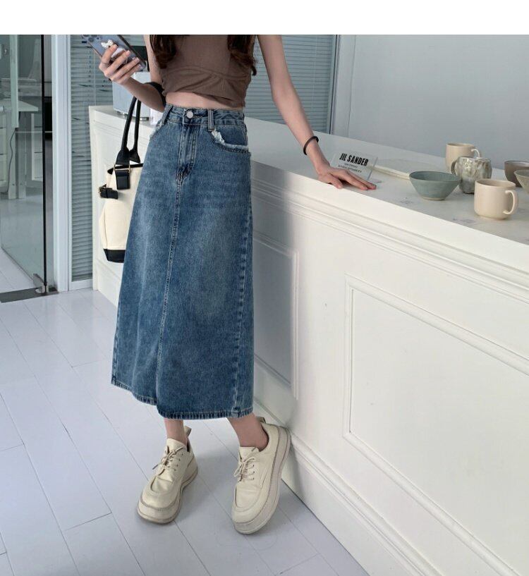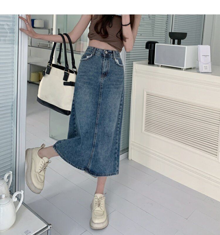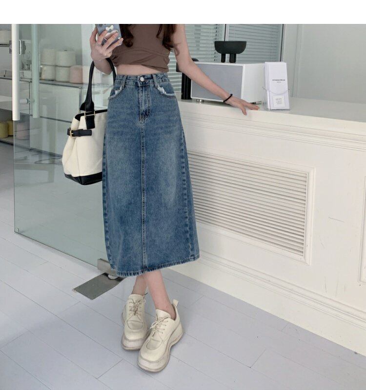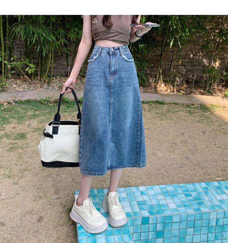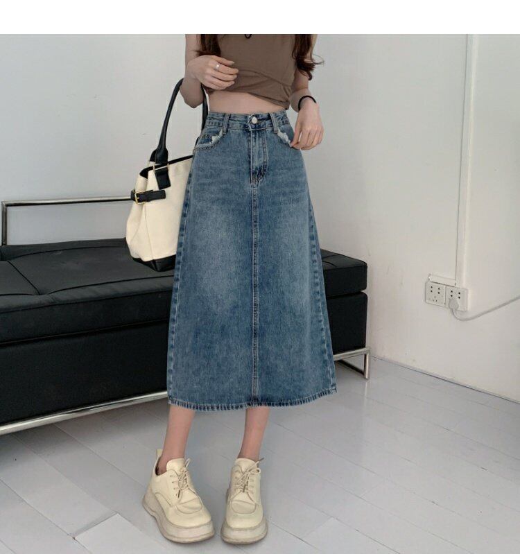 スタンダードハイウェストウェストスカート スプリングAライン薄手 レトロ 春物 ウエスト ミドル丈 MONROE4072800063