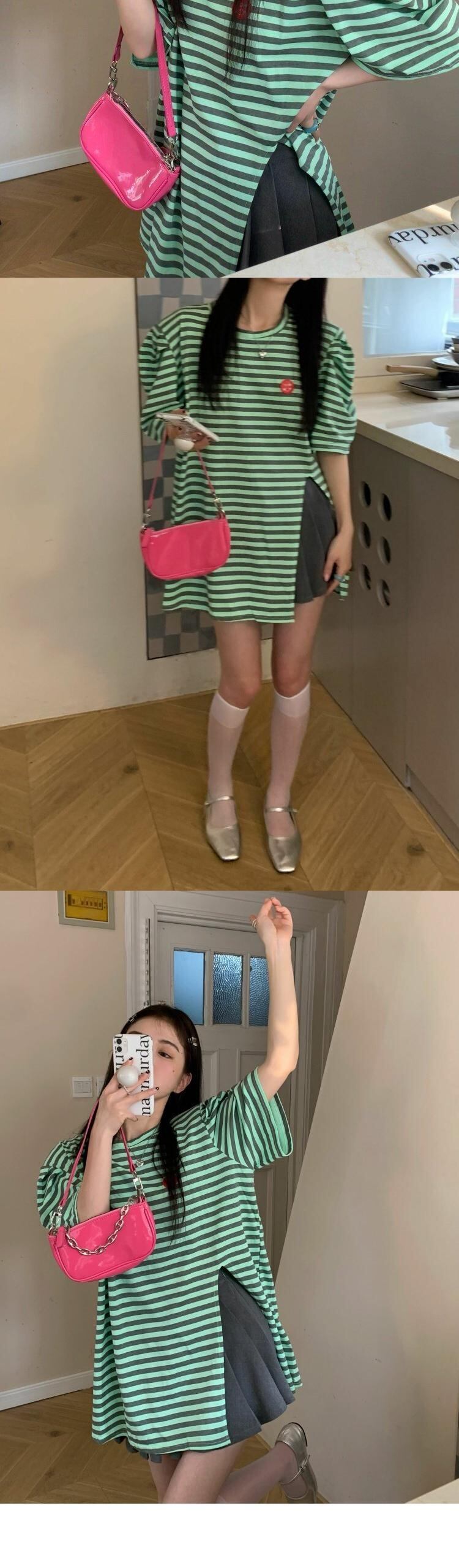 スタイルTシャツスプリングストライプスリットトップス ルーズ薄手 原宿 春物 MONROE20103628535