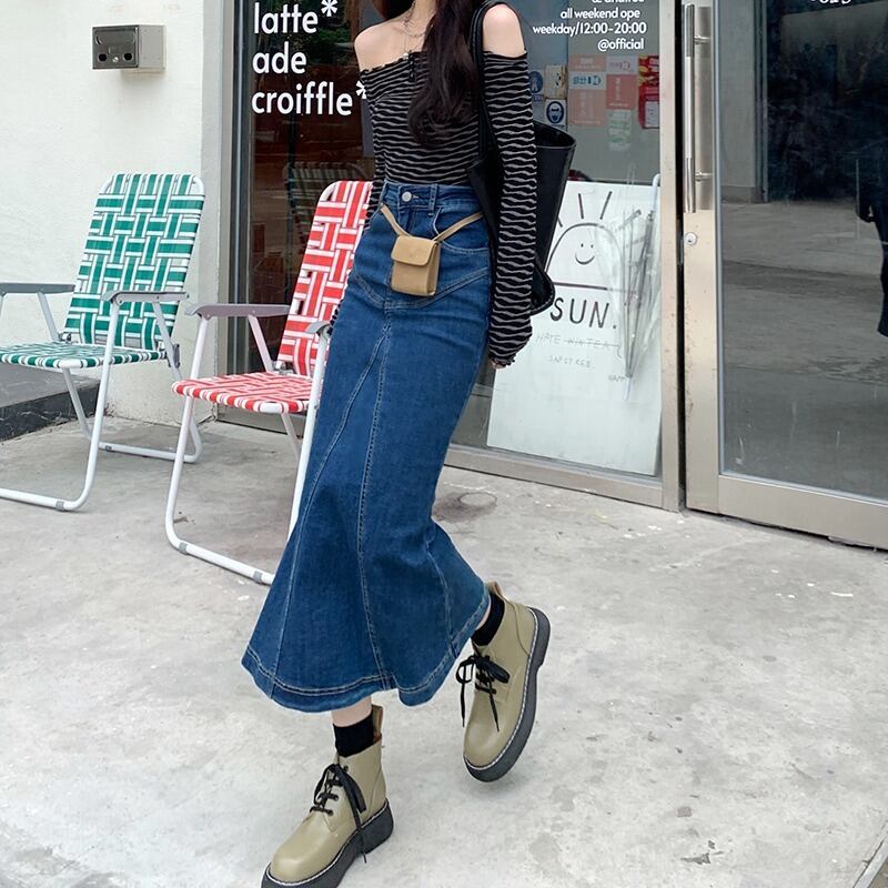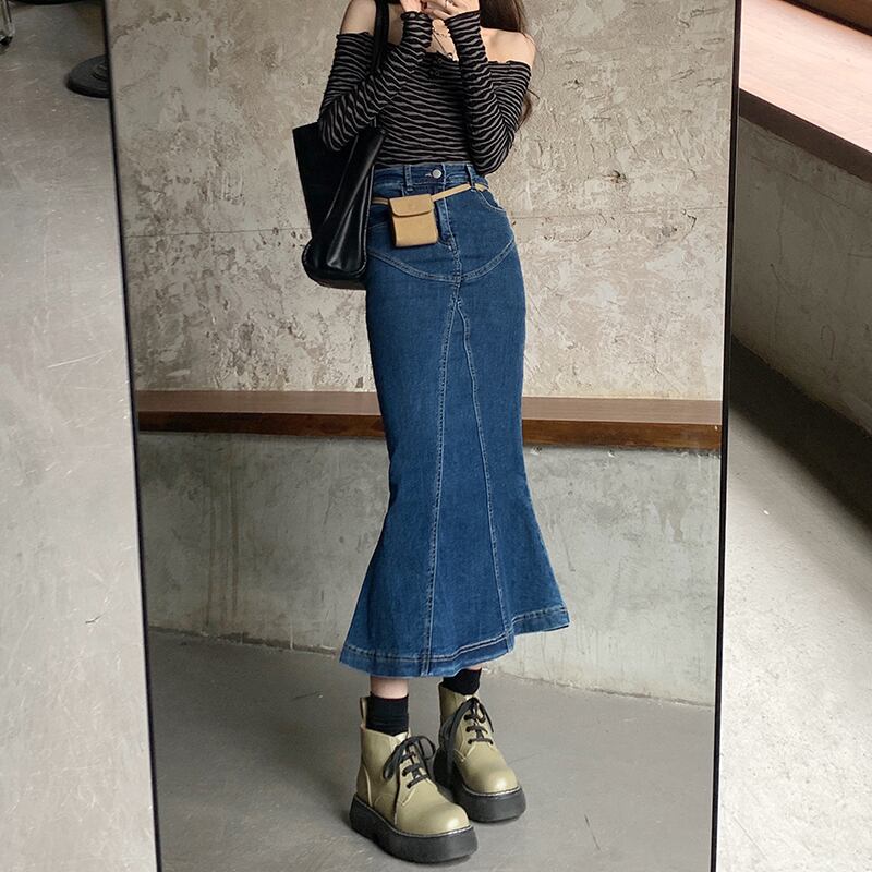 スタンダードスカート スプリング秋物ハイウェストウェストロング レトロ 春物 オータム ウエスト ミドル丈 MONROE16412617922