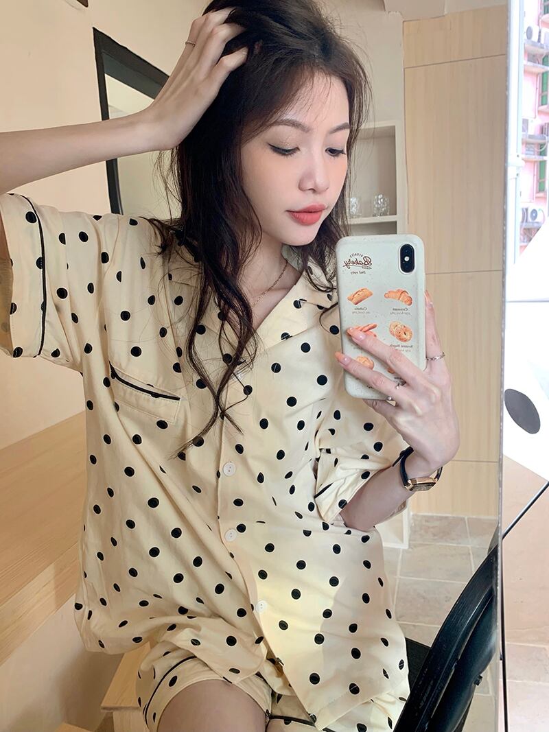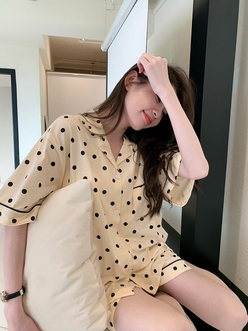韓国ファッションカジュアルパジャマ ルームウェアスプリングシャツ トップス ショーツ セット 春物 スタイル MONROE81199823259