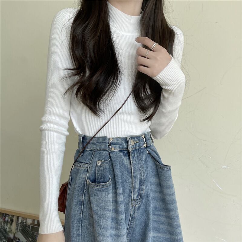 ストライプブルーニットゆったりシャツ スプリング秋物プルオーバー トップス ロング 春物 オータム 長袖 MONROE98226187148