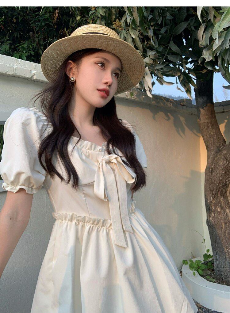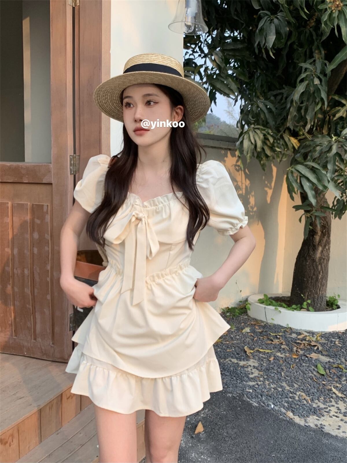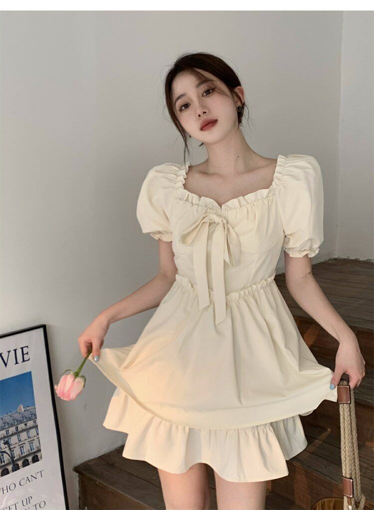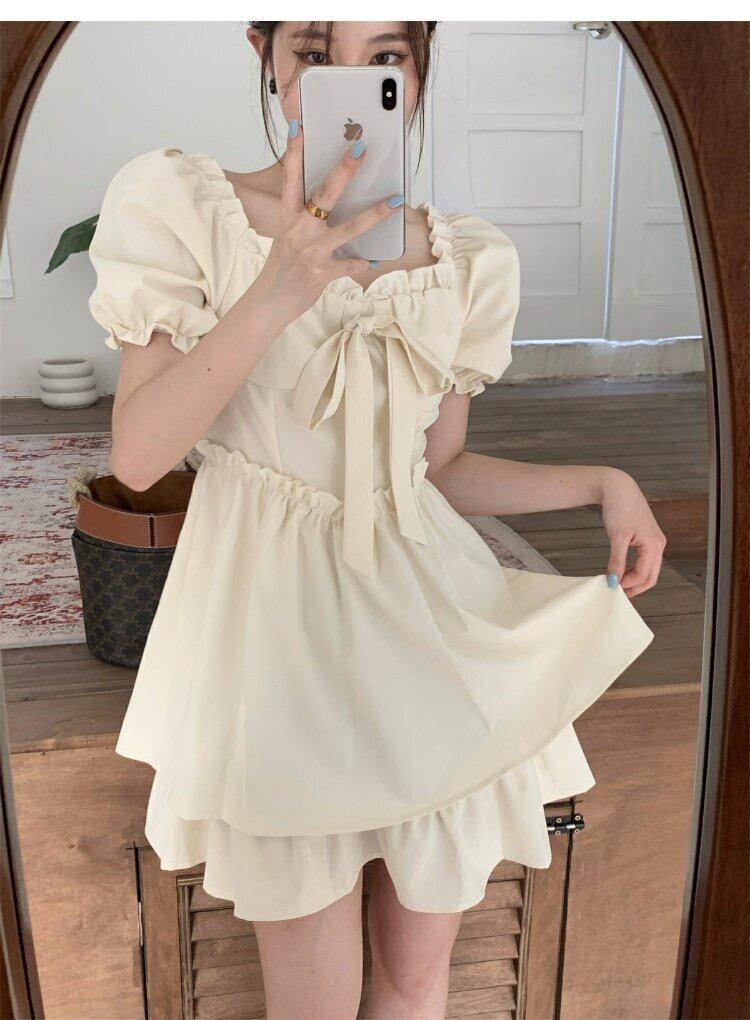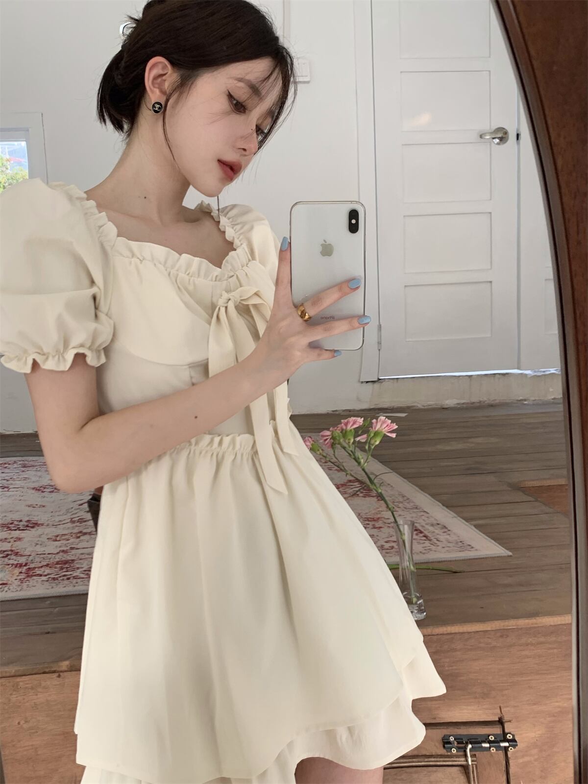 ワンピーススプリングカラー薄手ウェストスカート 春物 スクウェア パフスリーブ ウエスト MONROE21682678341