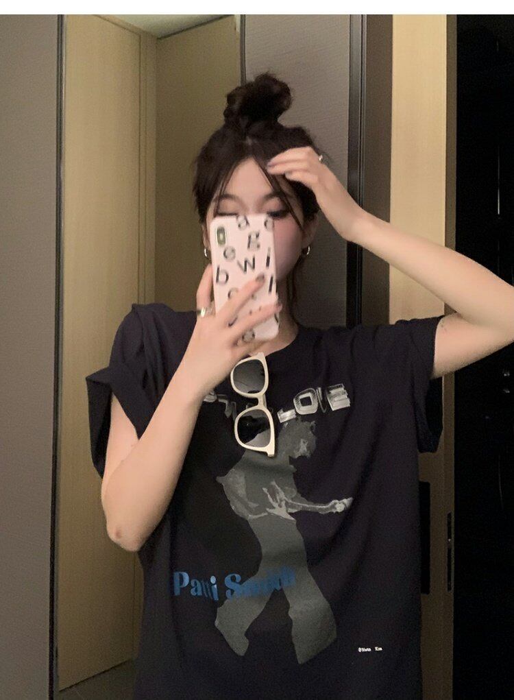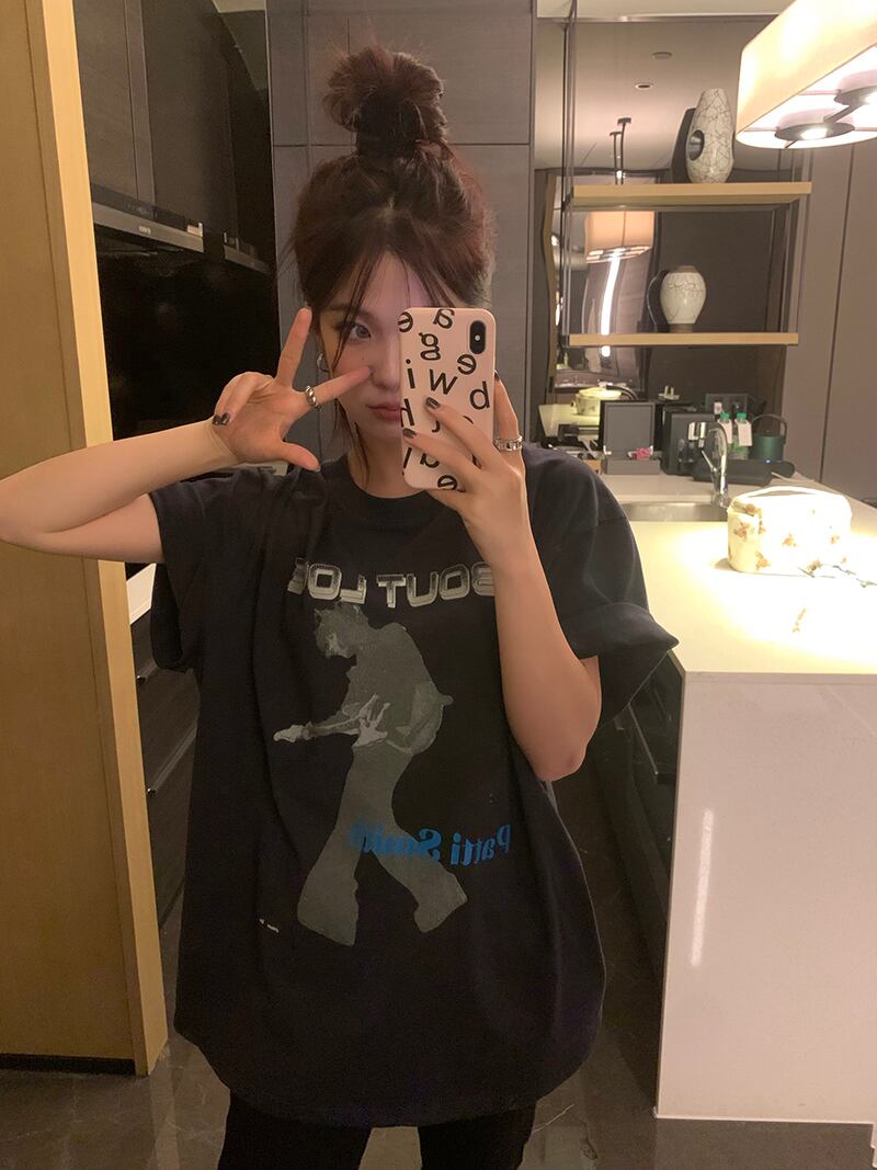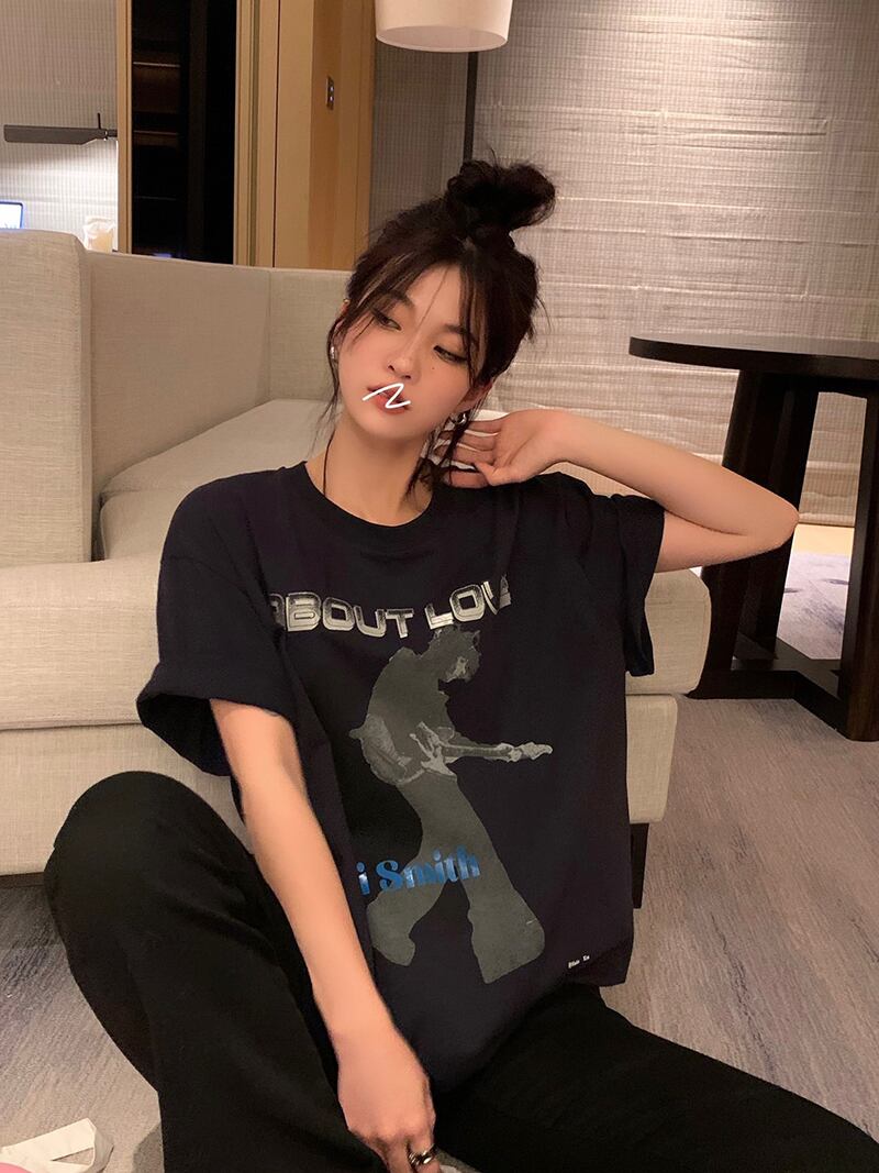 Tシャツパターンプリントトップス ラウンドネックプルオーバー NEW Oネック MONROE12042550561
