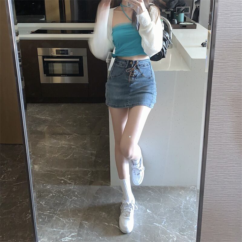 ストラップ ハイウェストウェストスカート スタンダードAラインショート レトロ ウエスト MONROE20143996906