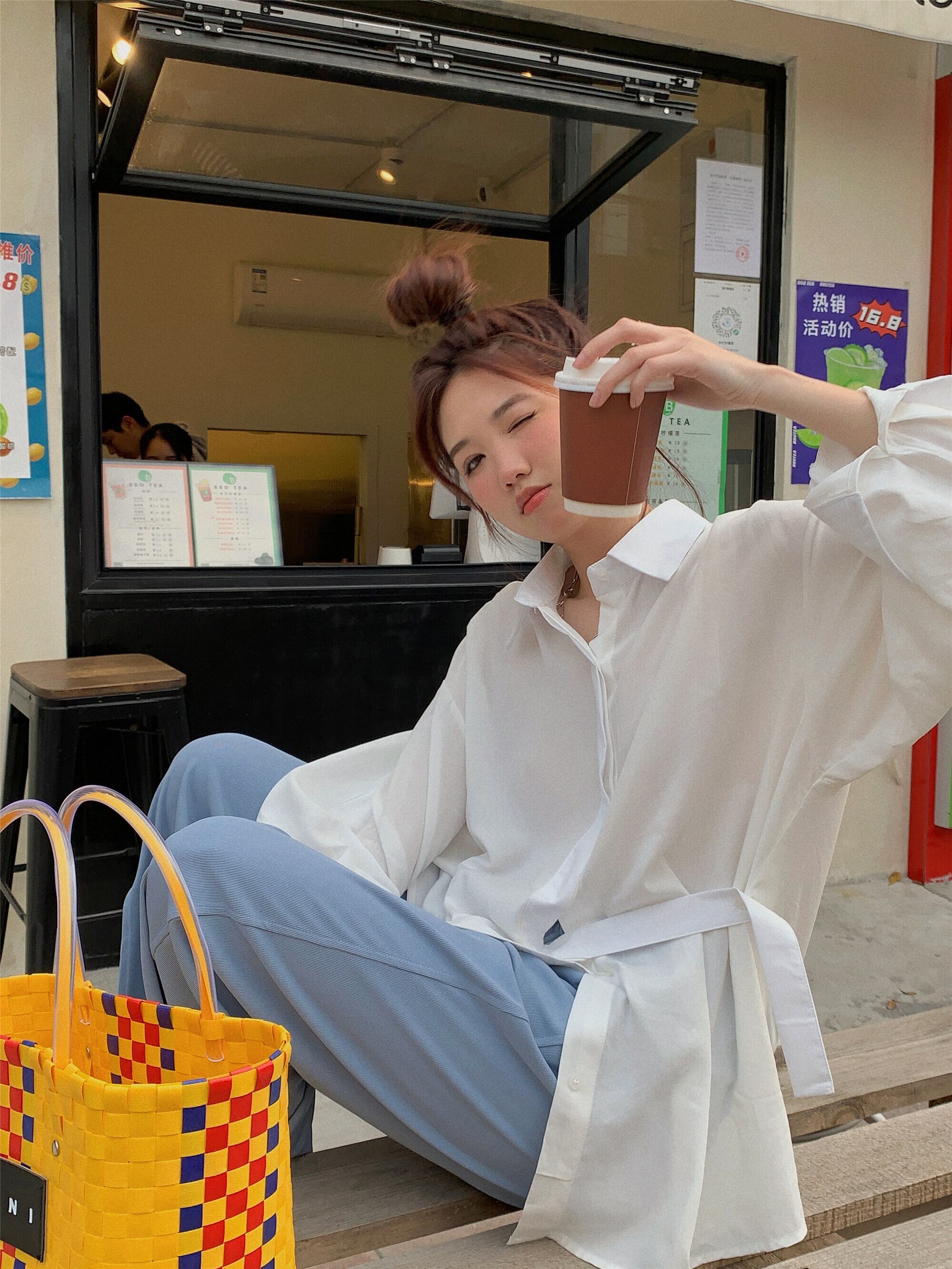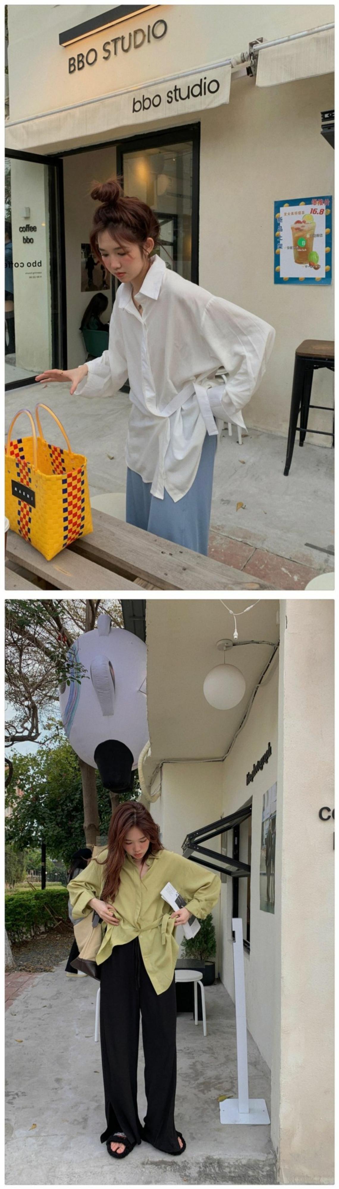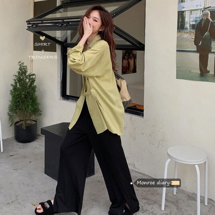 韓国ファッションスタンダード薄手シャツ グリーンルーズジャケット スプリングトップス レトロ 春物 スタイル MONROE10397333616