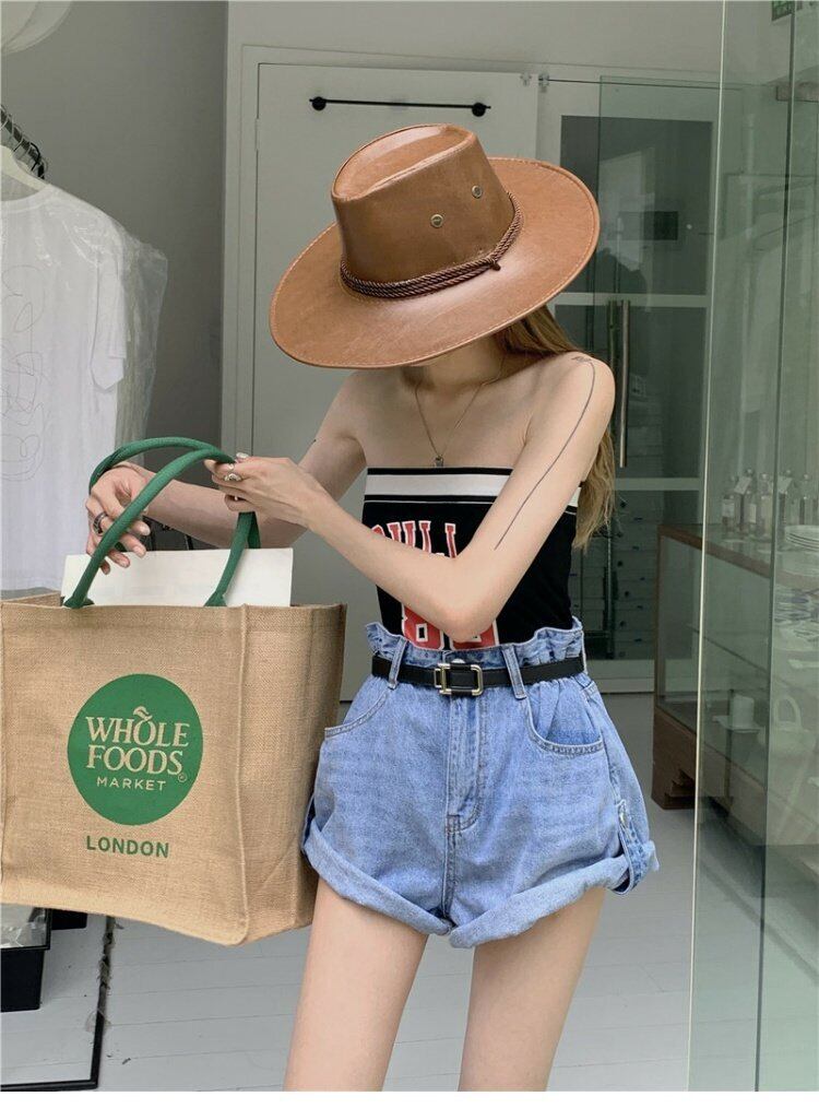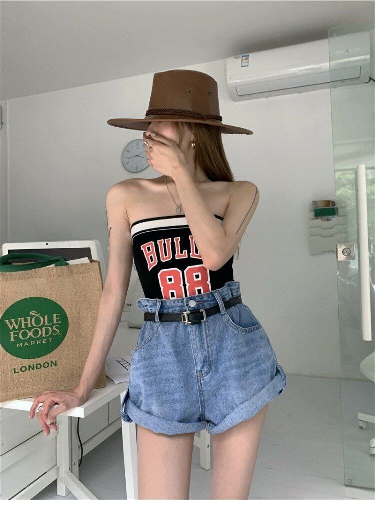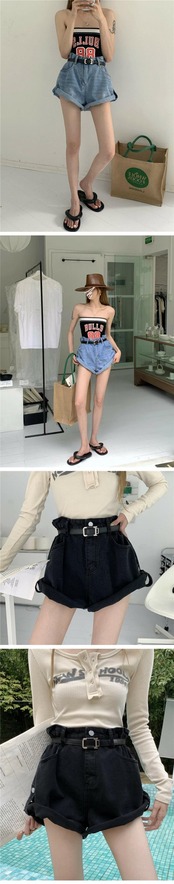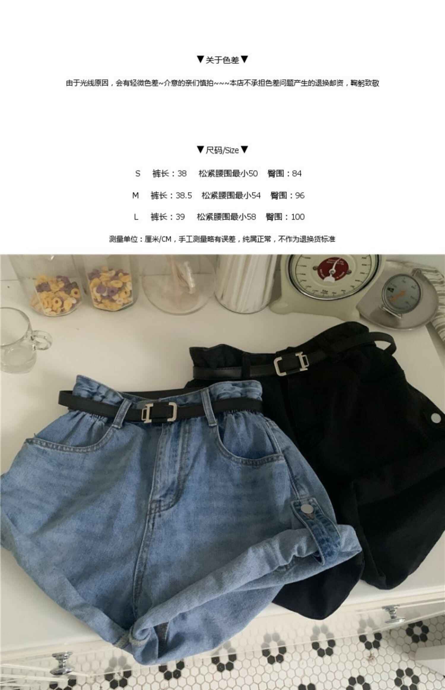 ブラックジーンズ ハイウェストウェストスリムパンツ 夏服ルーズワイドレッグショーツ カジュアルベルト 夏物 ハーネス ワイドパンツ ウエスト MONROE88133168497