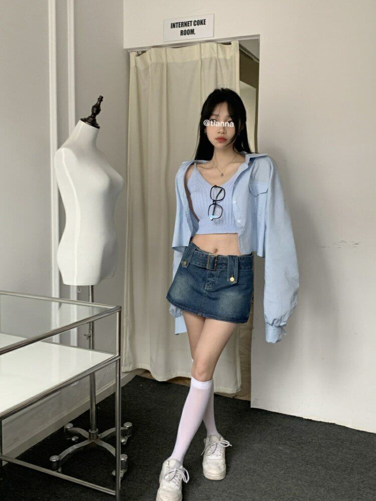 ブルールーズカジュアルシャツ 薄手コート スプリングトップス 春物 MONROE33567608577