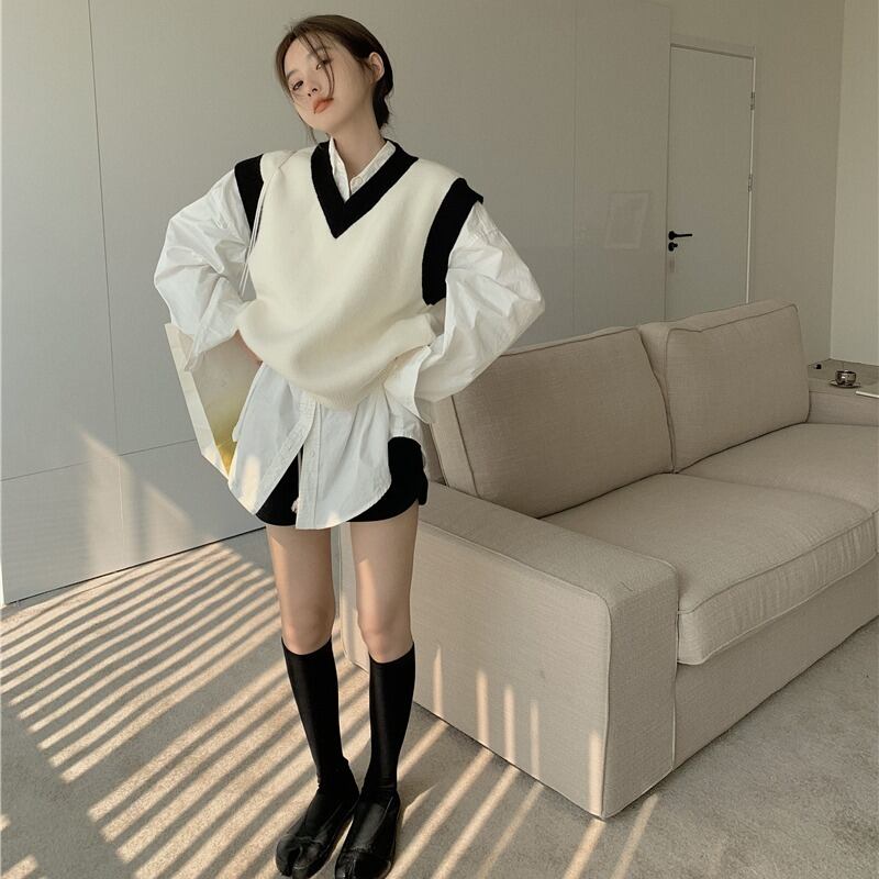 韓国ファッションルーズプルオーバー ニットカジュアルセーター 秋物スタイルトップス レッド オータム MONROE8290320199