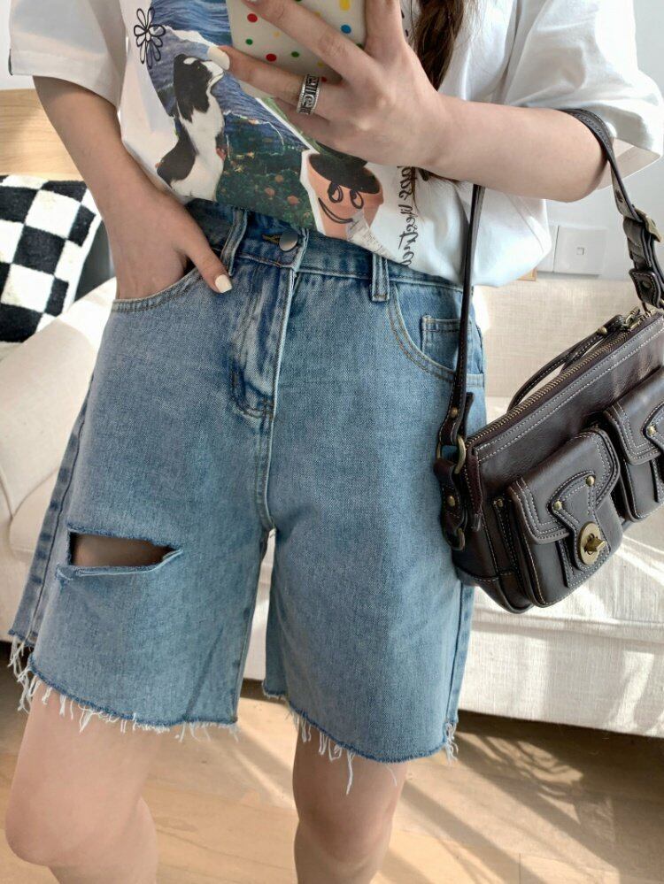 スタンダードジーンズ スプリングワイドレッグパンツ ルーズウェスト薄手ショーツ レトロ 春物 ワイドパンツ ウエスト MONROE79350341385