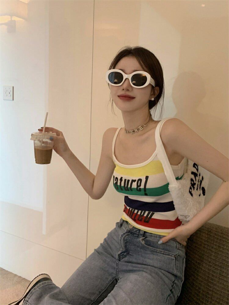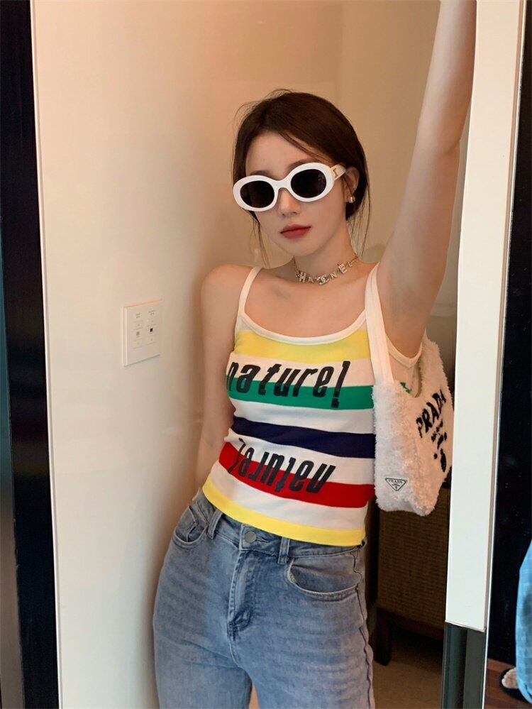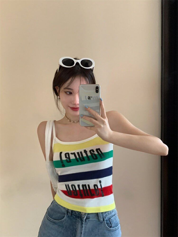 スタイルカラーストライプスプリング夏服プリント柄ショートトップス 人気 大人ガーリー スウィート キュート カジュアル 春物 夏物 MONROE12501274259