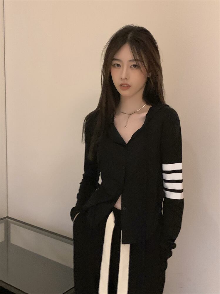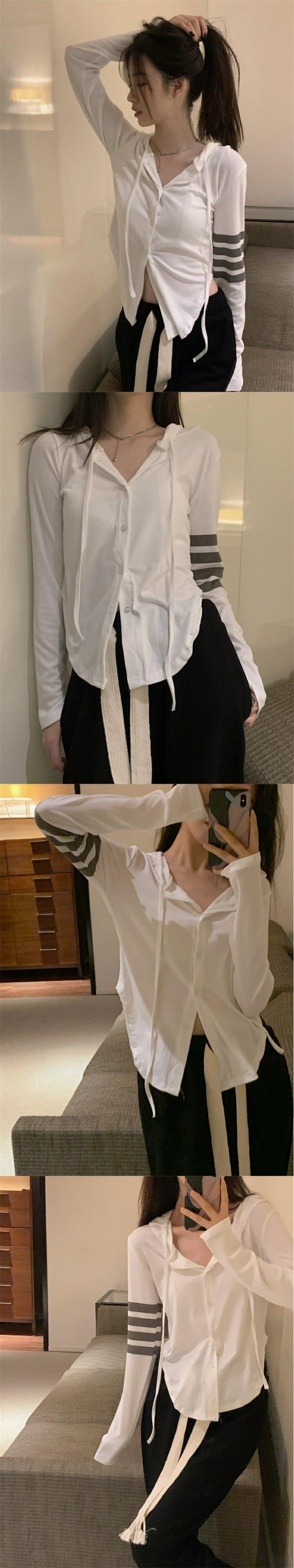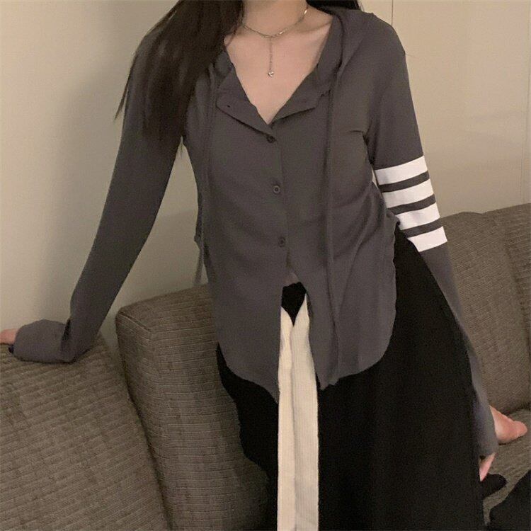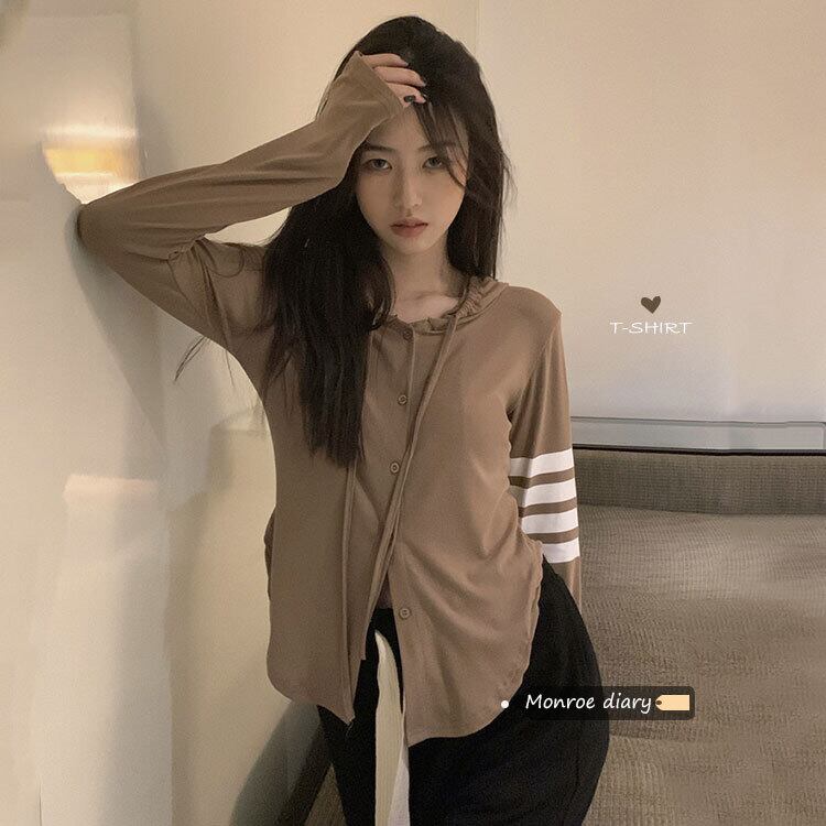 スタンダードフードTシャツシャツ ゆったりスプリングカーキ ロング レトロ 春物 長袖 MONROE40566961257