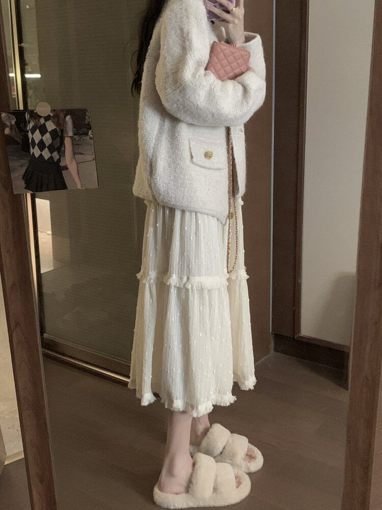 NEWスカート レディーススプリング韓国ファッションホワイトロング 大人ガーリー スウィート キュート カジュアル 春物 MONROE23598032952