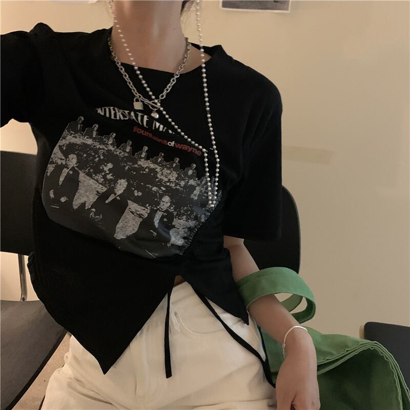 韓国ファッションショートTシャツシャツ ブラックスタンダードゆったりスプリング薄手トップス レトロ 春物 スタイル MONROE90617096770