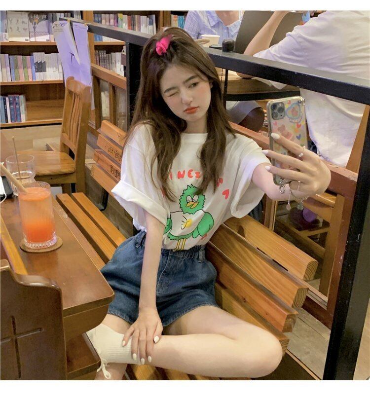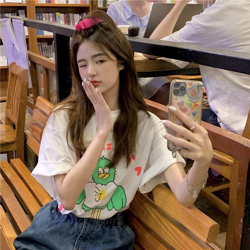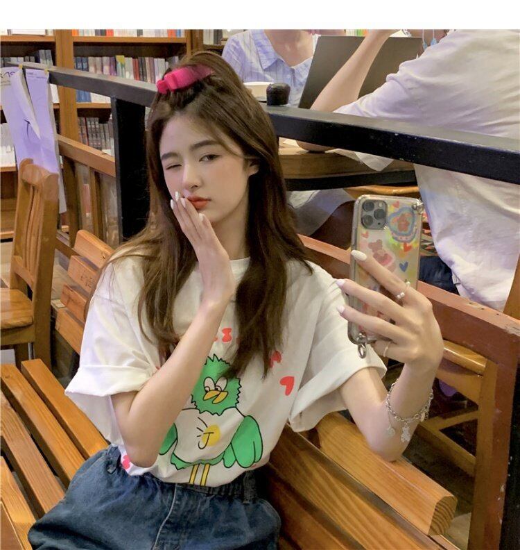 韓国ファッションスタイルTシャツ夏服ルーズ薄手プリント 大人ガーリー スウィート キュート カジュアル 夏物 MONROE88319642128