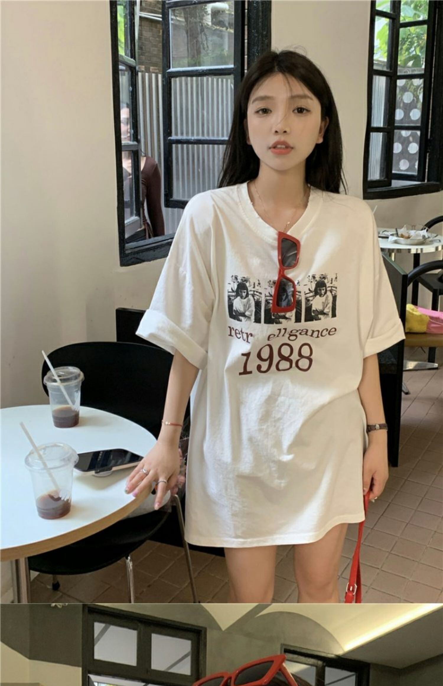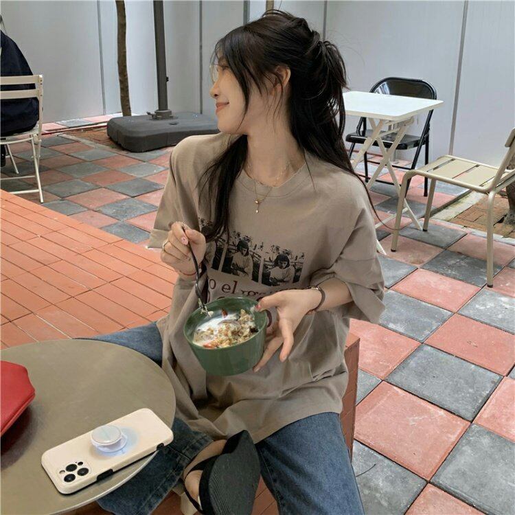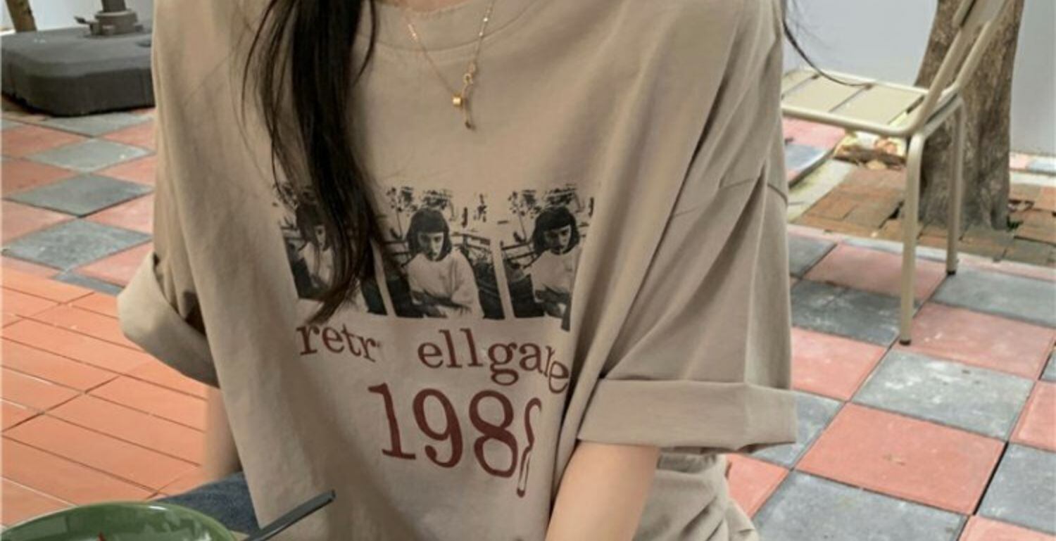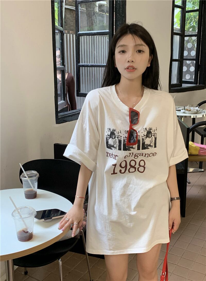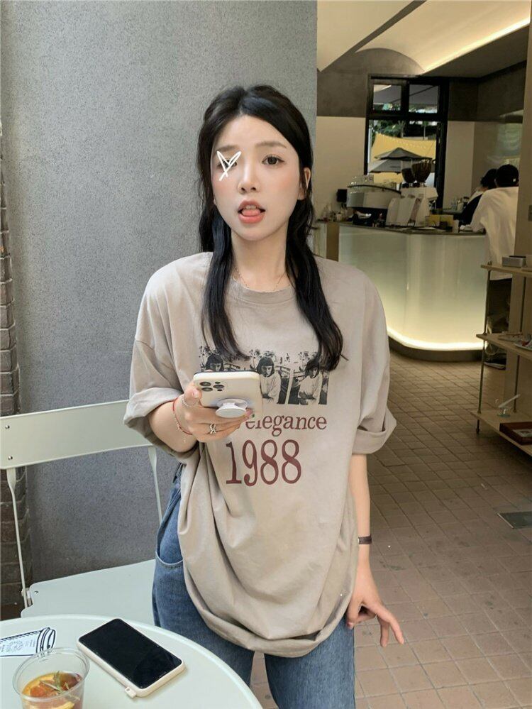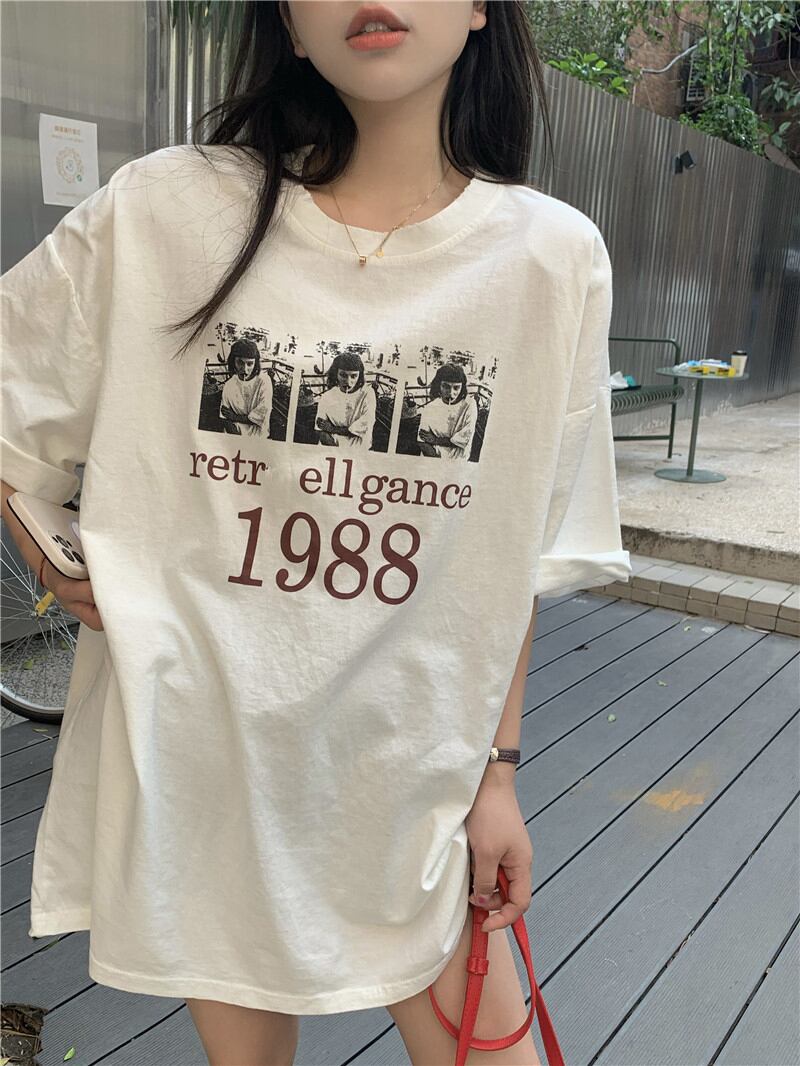 スタンダードTシャツシャツ スプリングルーズ薄手トップス プリントゆったり レトロ 春物 MONROE33185123019