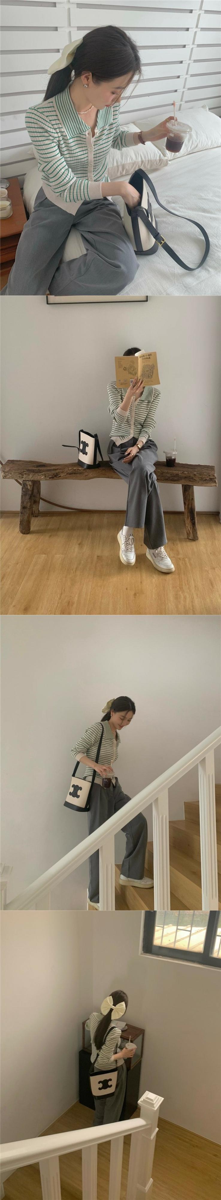 色:グリーンカーディガン1310,グレーパンツ3063