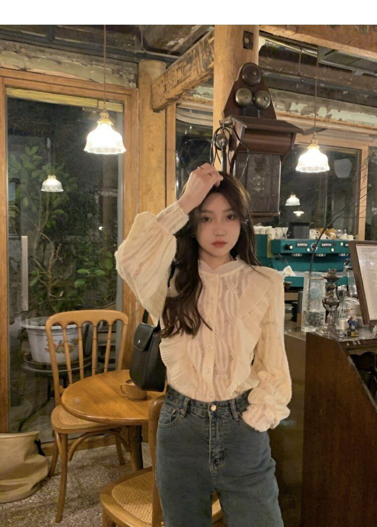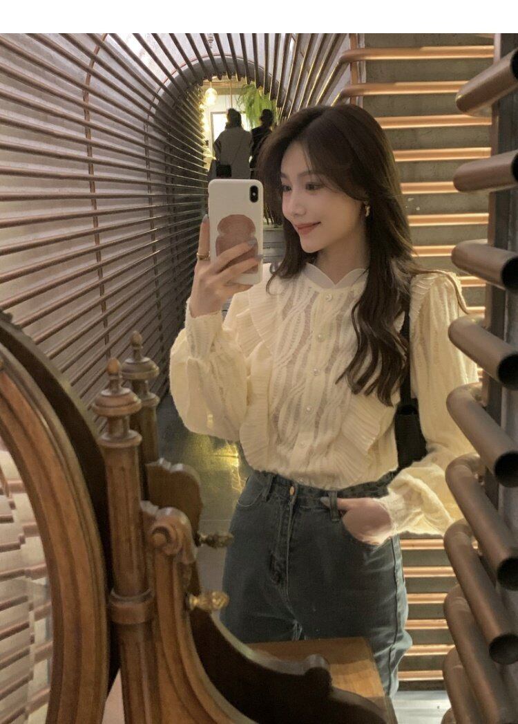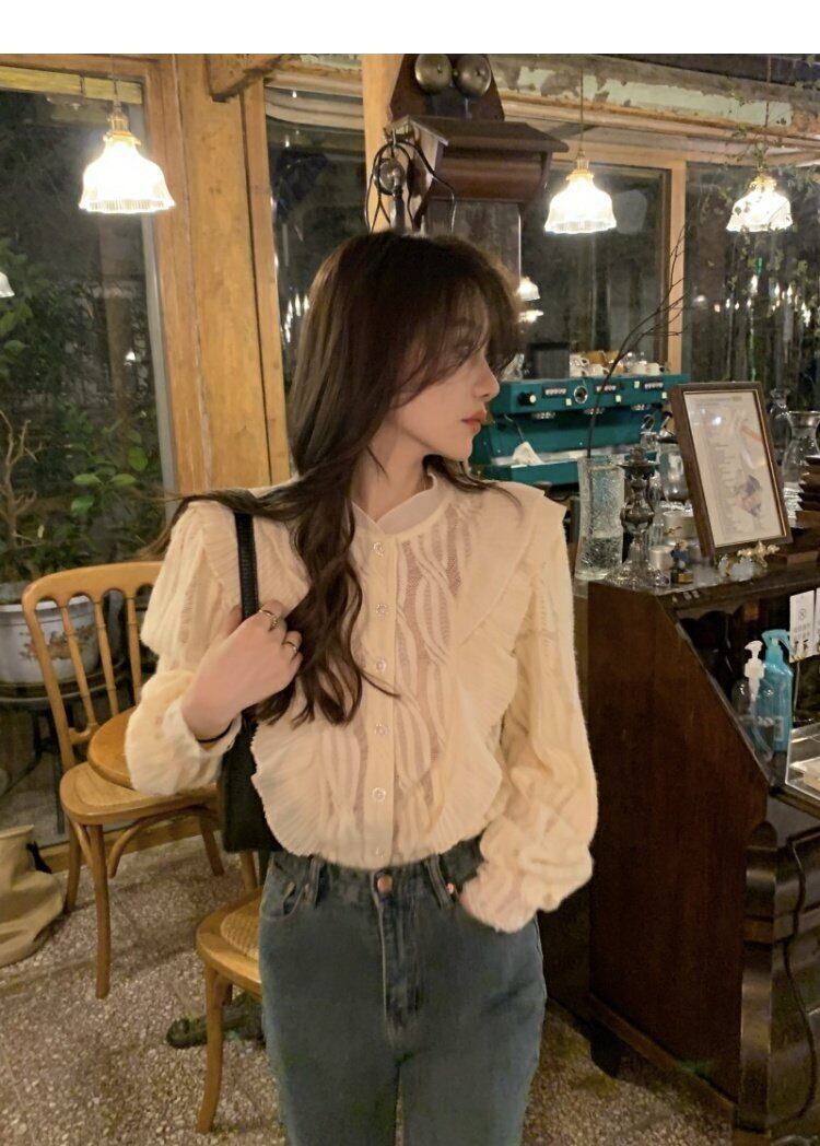 韓国ファッションレースシャツ シフォンスプリングトップス 大人ガーリー スウィート キュート カジュアル 春物 スタイル MONROE5161450005