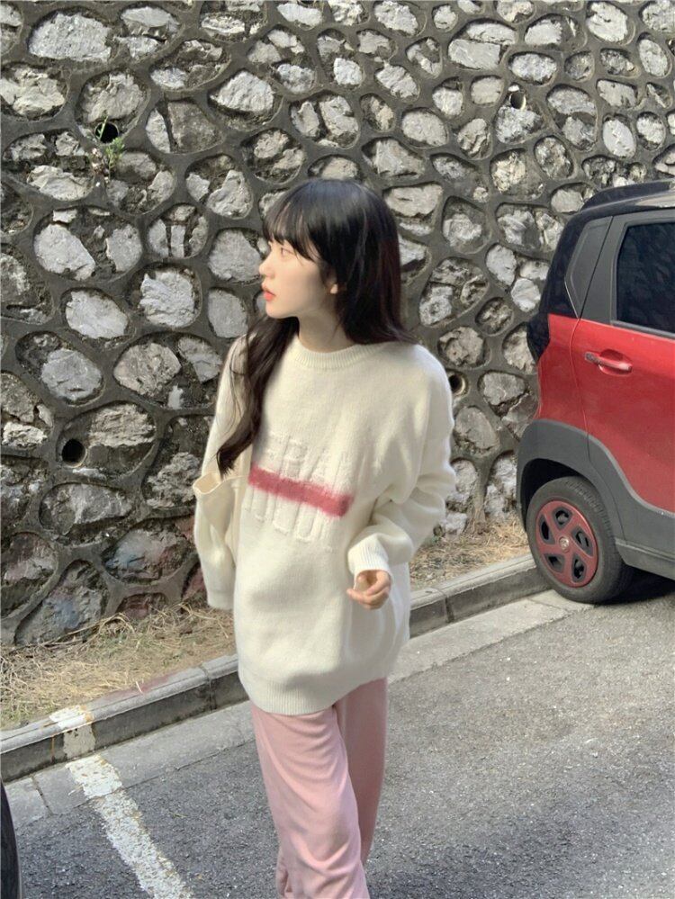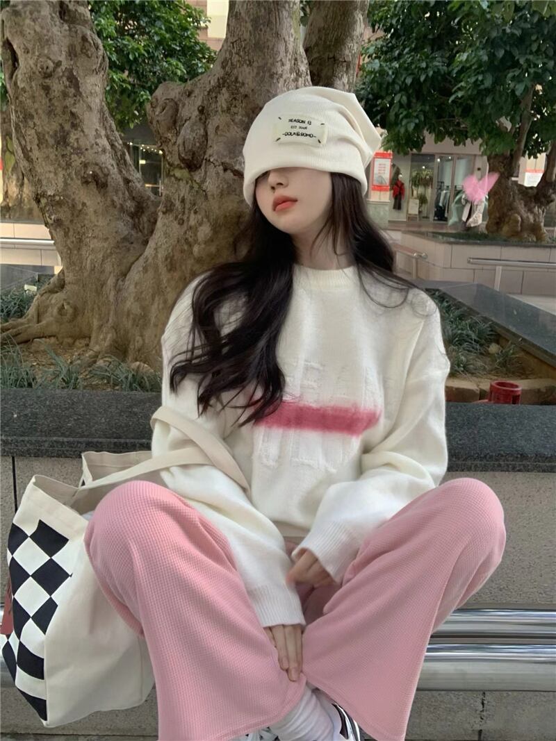 ホワイトセーター スプリングスタンダードルーズスタイルトップス レトロ 春物 MONROE49880700905