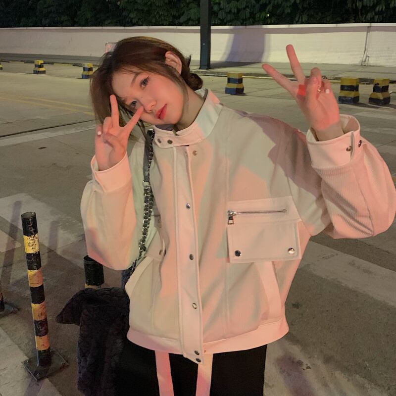 スタイルNEWルーズホワイトレザージャケット 秋物カジュアルトップス オータム MONROE94442299867