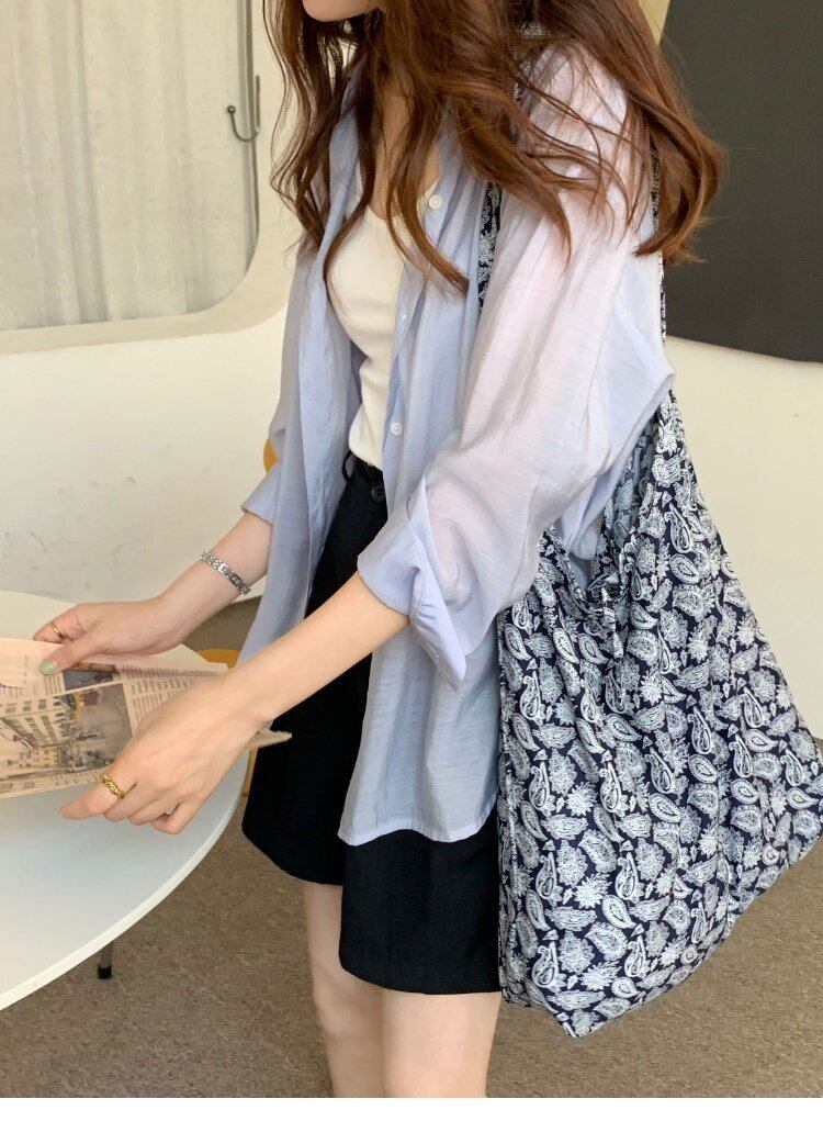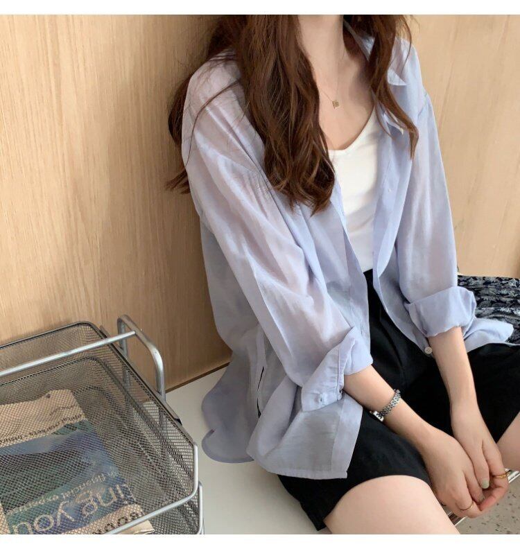韓国ファッション薄手バックシャツ 夏服トップス ロング 夏物 長袖 MONROE50828378588