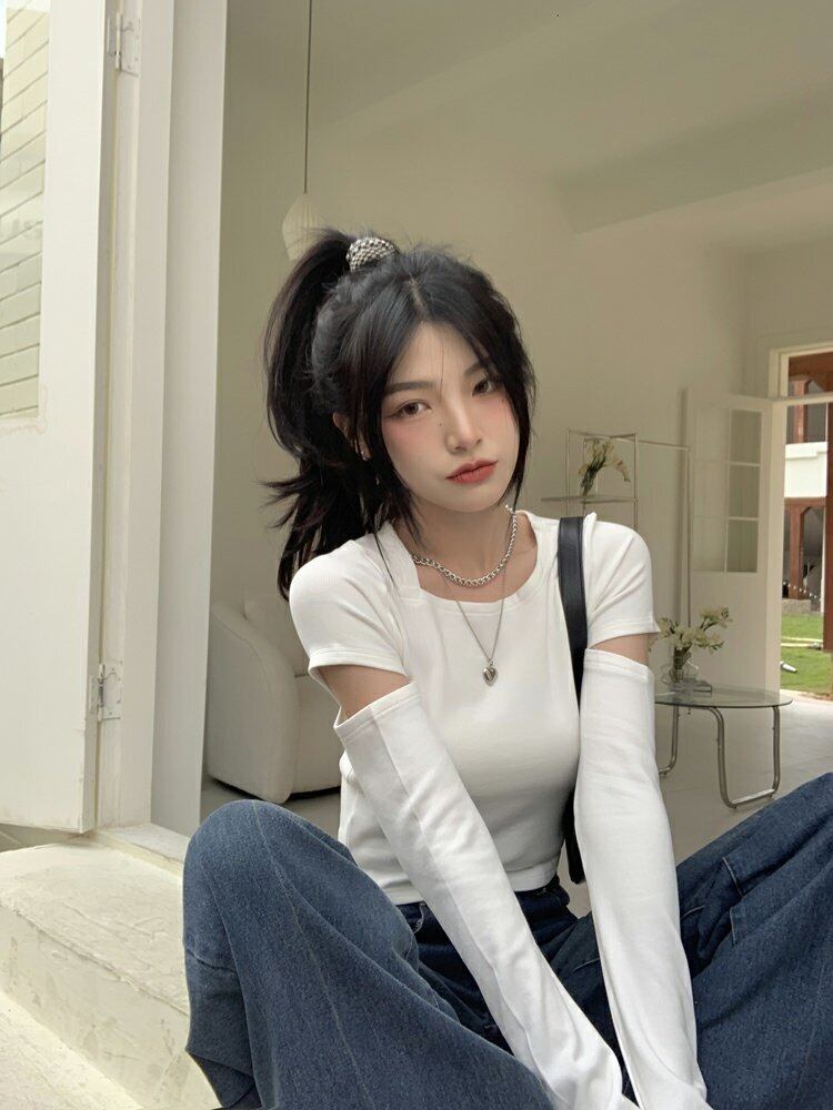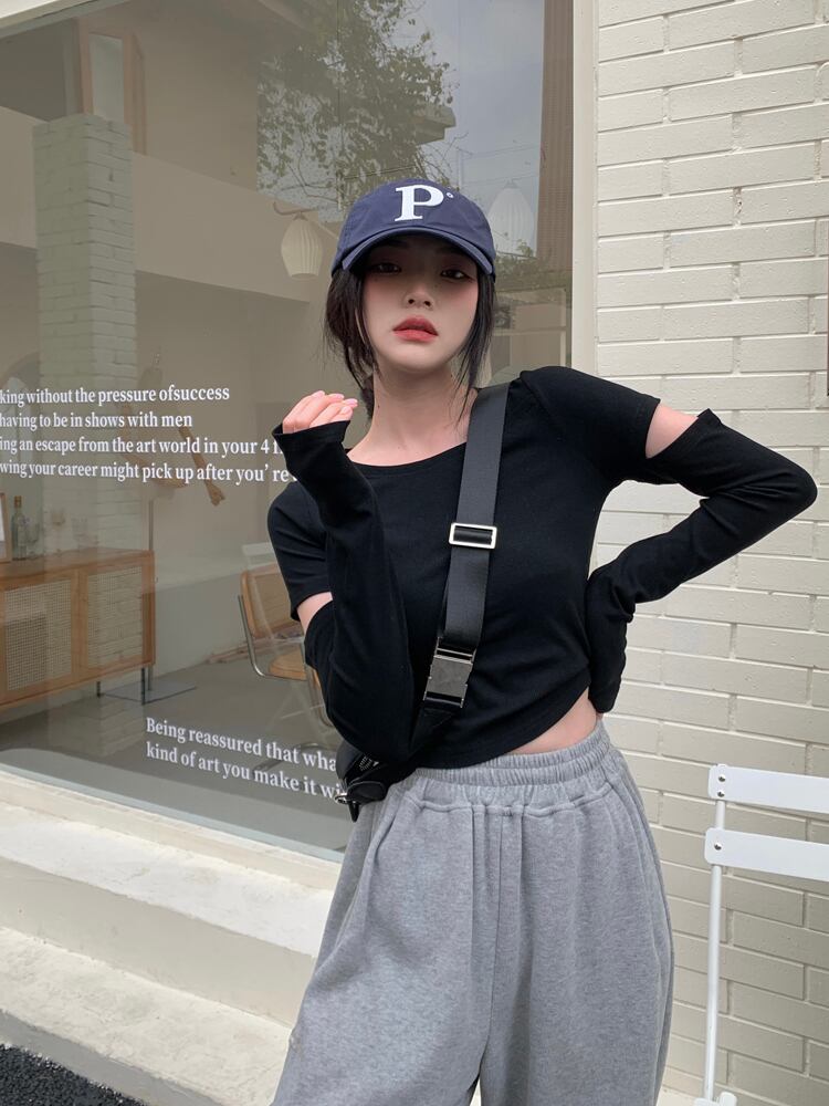 ブラックTシャツシャツ ショートスリムゆったりスプリングトップス 春物 MONROE74274373512