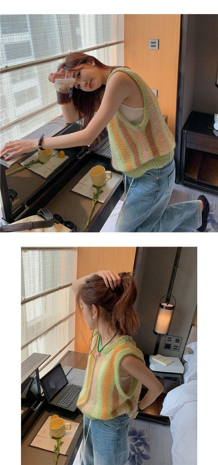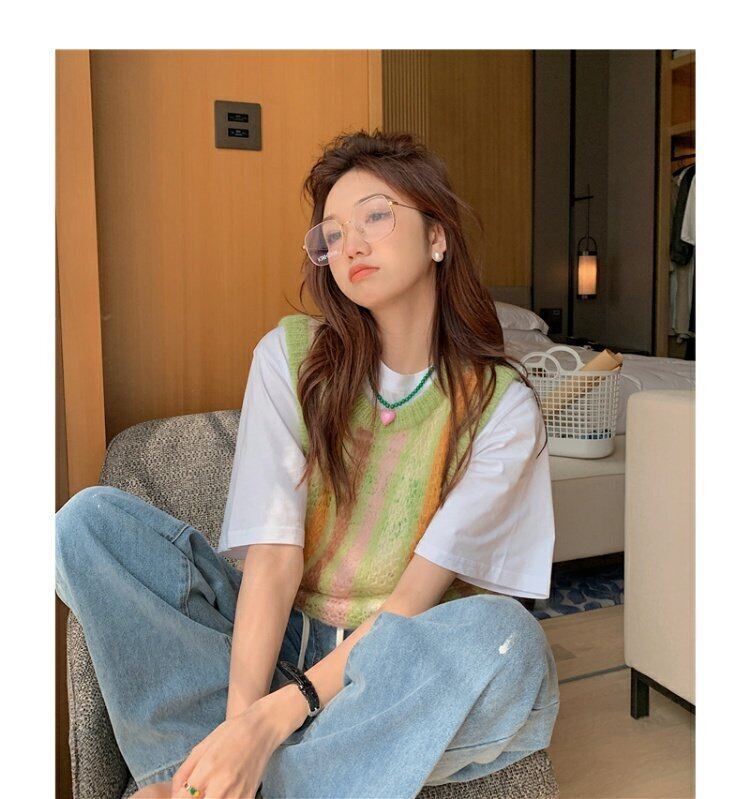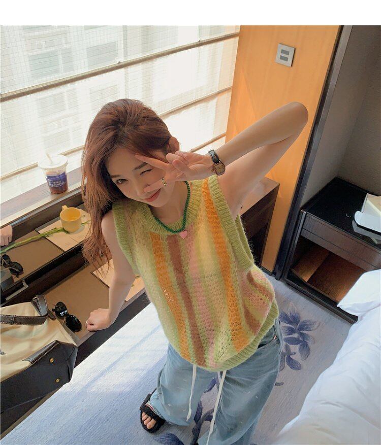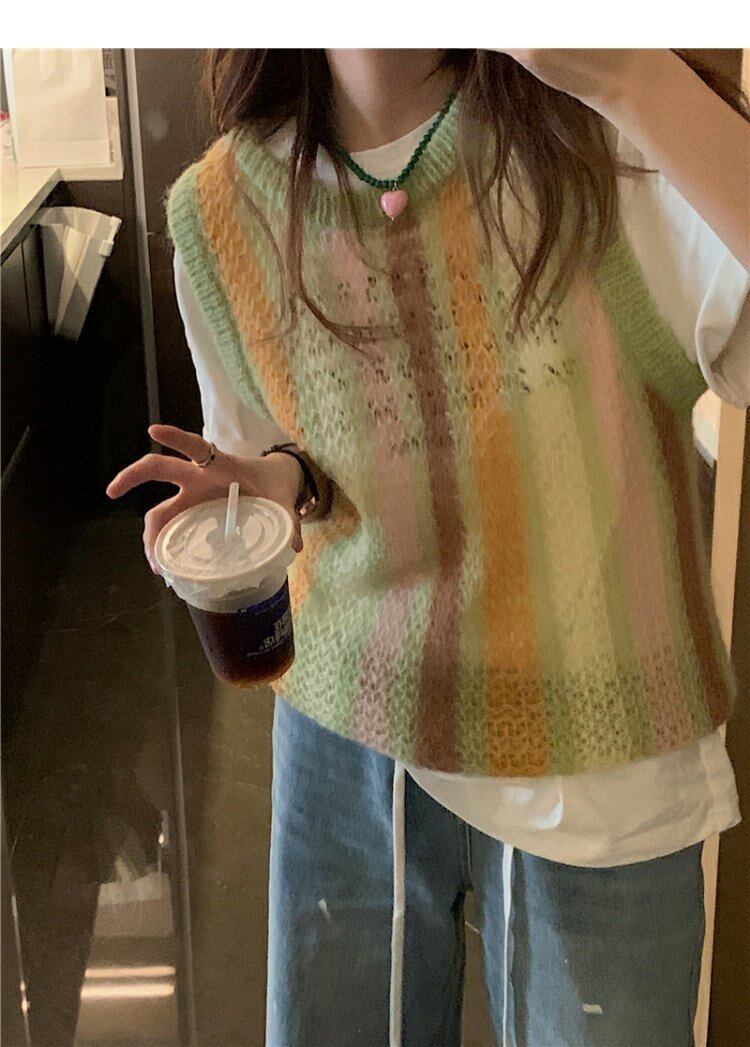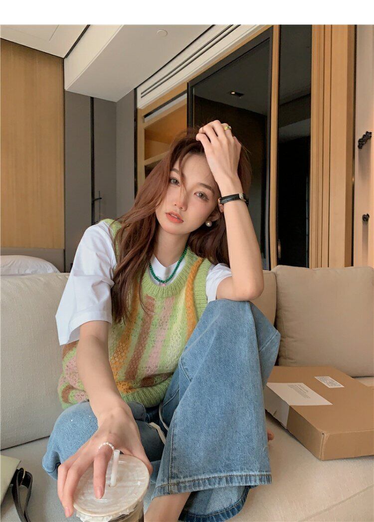 カラーストライプセーター スプリングルーズトップス 春物 MONROE63847797523