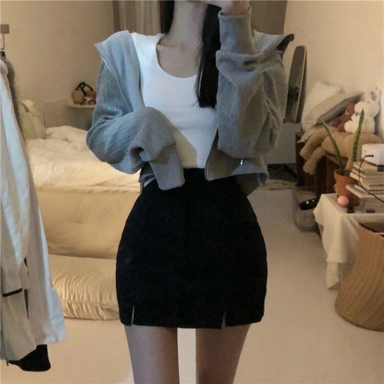 フードショートコート スプリングジッパートップス 春物 MONROE26490615583