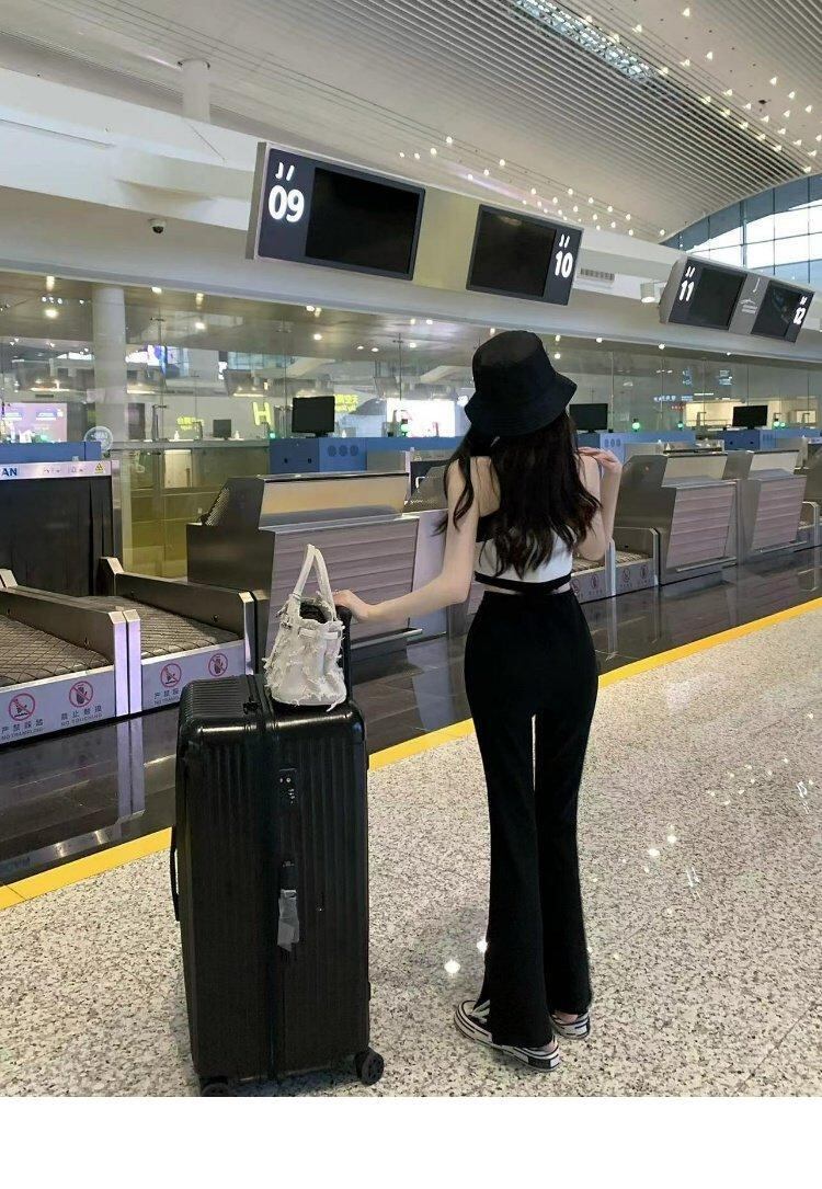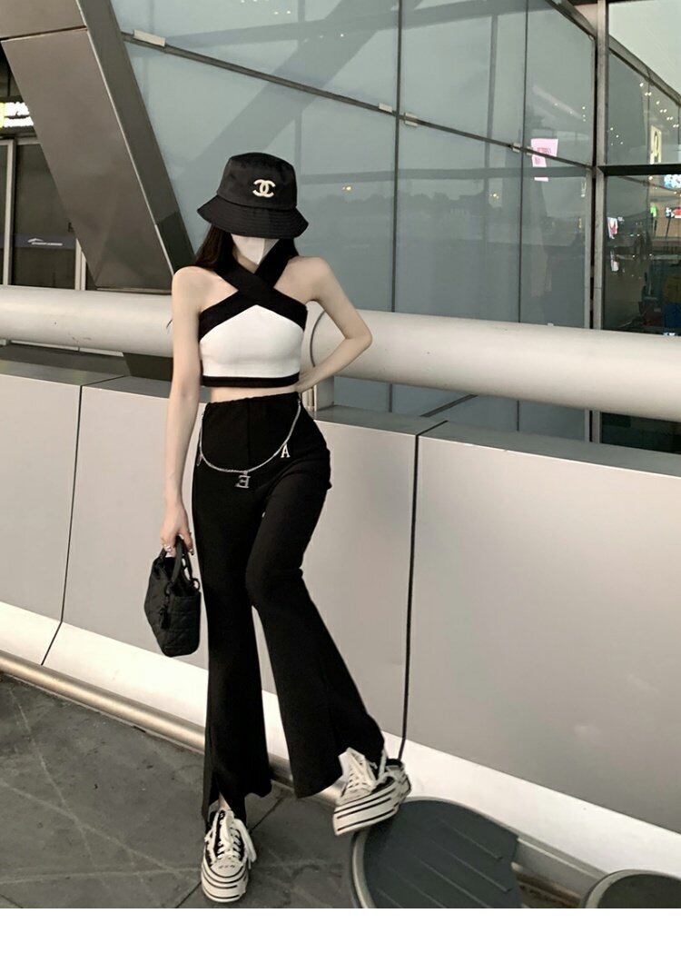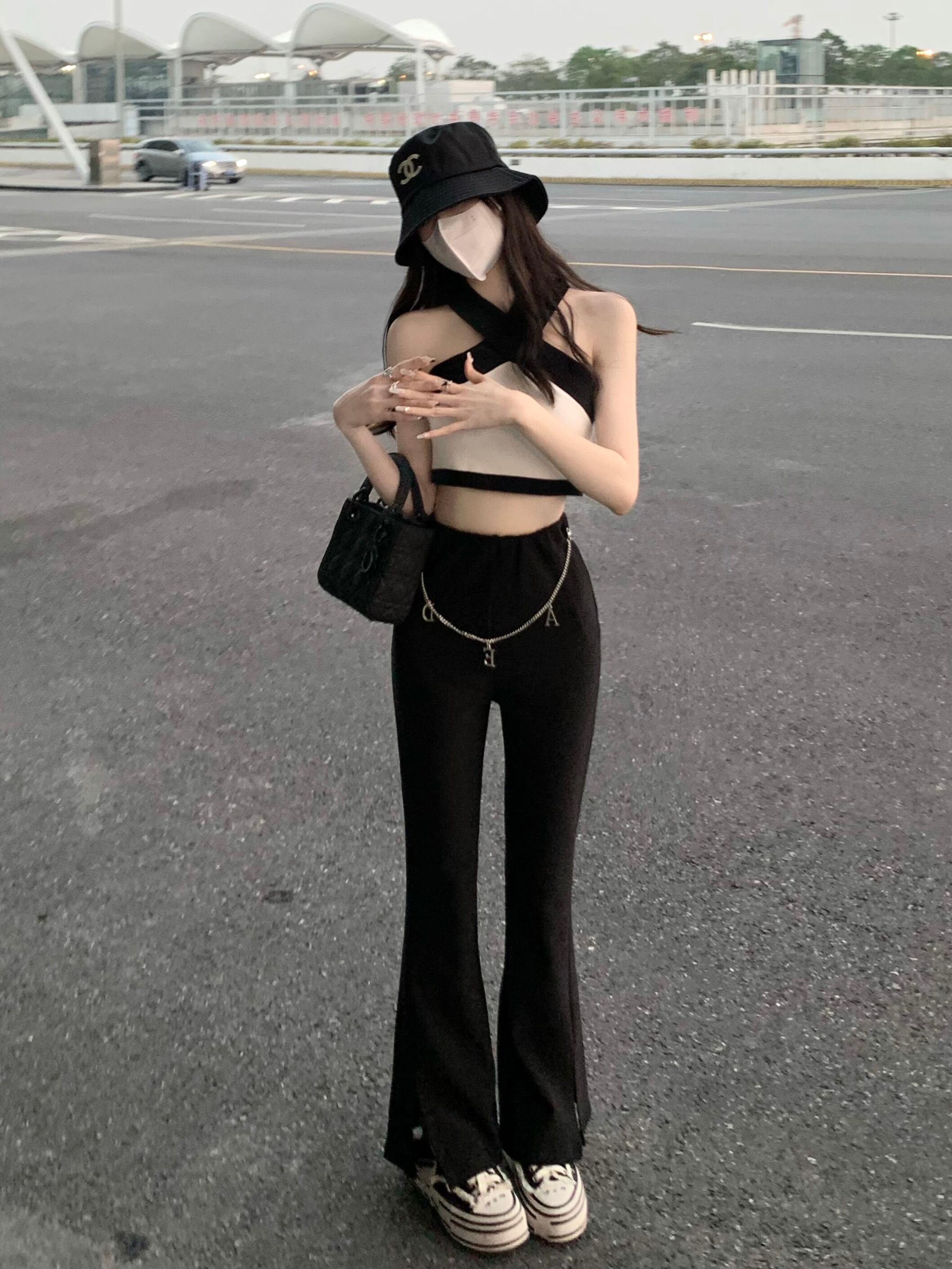 韓国ファッションブラックカジュアルパンツ スプリングハイウェスト 春物 スタイル ウエスト MONROE12321793947
