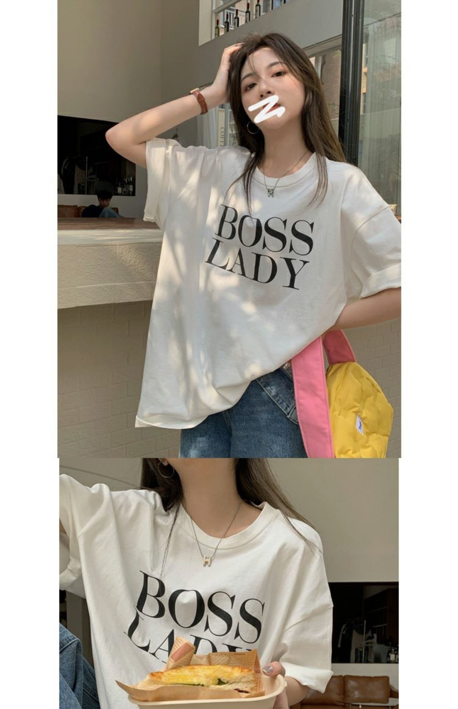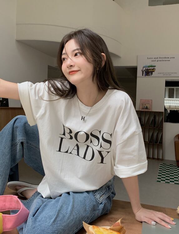 Tシャツスプリングブラックプリントルーズ半袖スリーブトップス ショート ハーフスリーブ 春物 MONROE86487509312