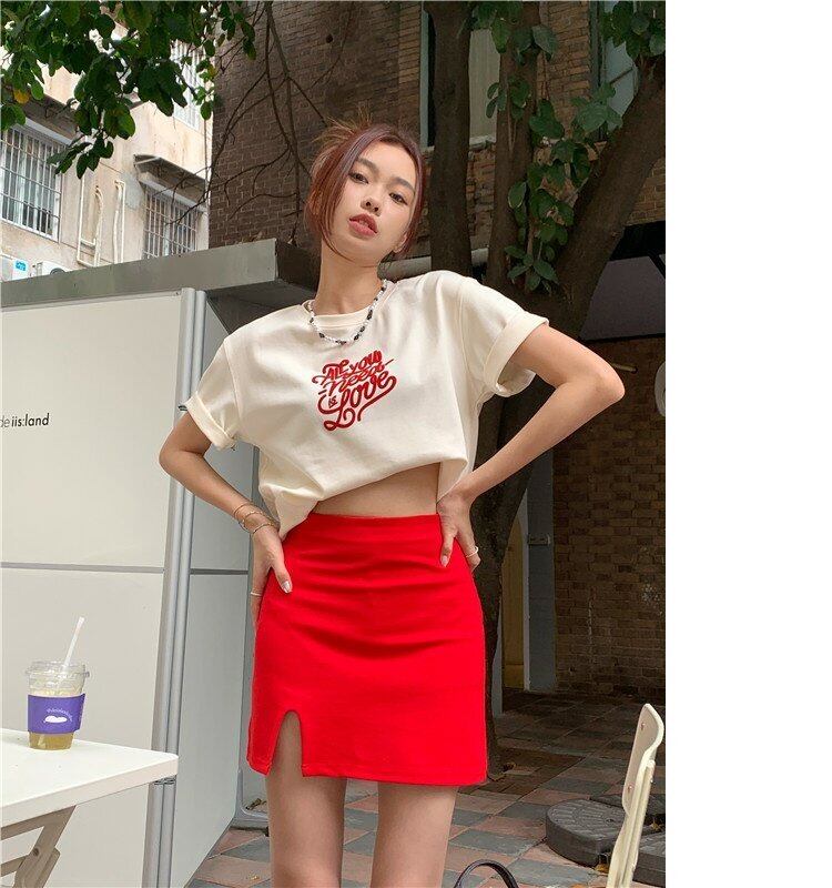 色:オフホワイトTシャツ(ワンサイズ),レッドスカート(サイズ),レッドスカート(サイズM),レッドスカート(Lサイズ)