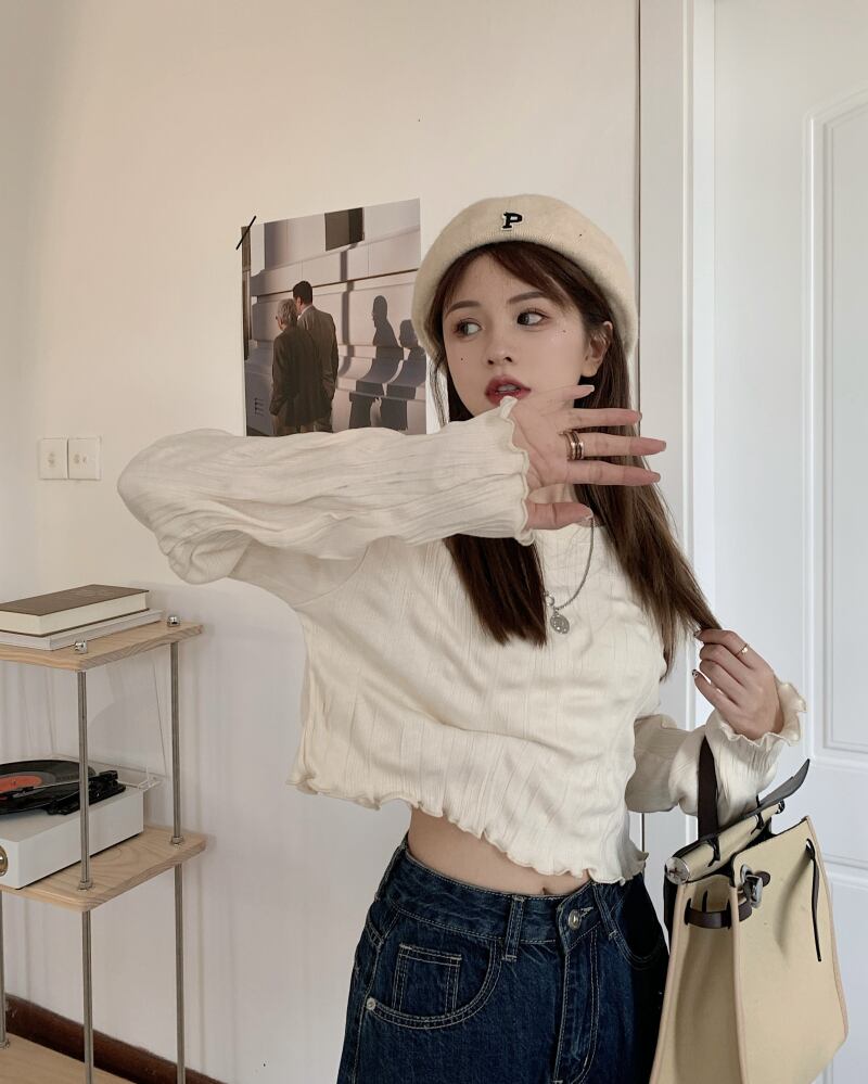 クロップドショートトップス スプリング秋物ゆったりシャツ ロング 大人ガーリー スウィート キュート カジュアル 春物 オータム 長袖 MONROE76177599966