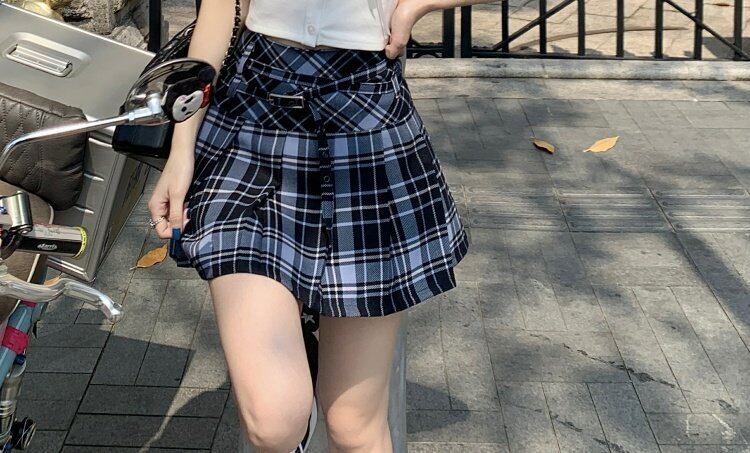 スカート 薄手ハイウェストウェストショートスプリング夏服Aライン韓国ファッション ストリート 春物 夏物 スタイル ウエスト MONROE65720746937