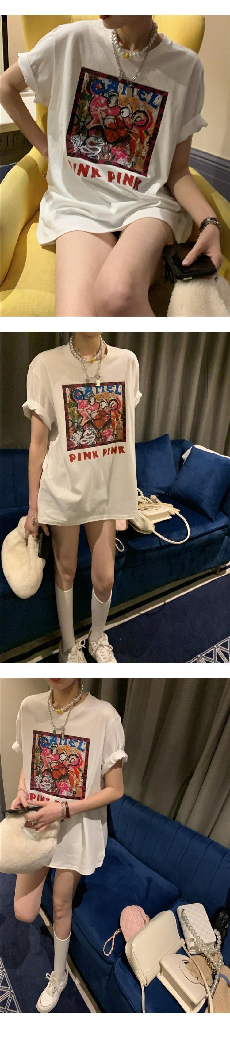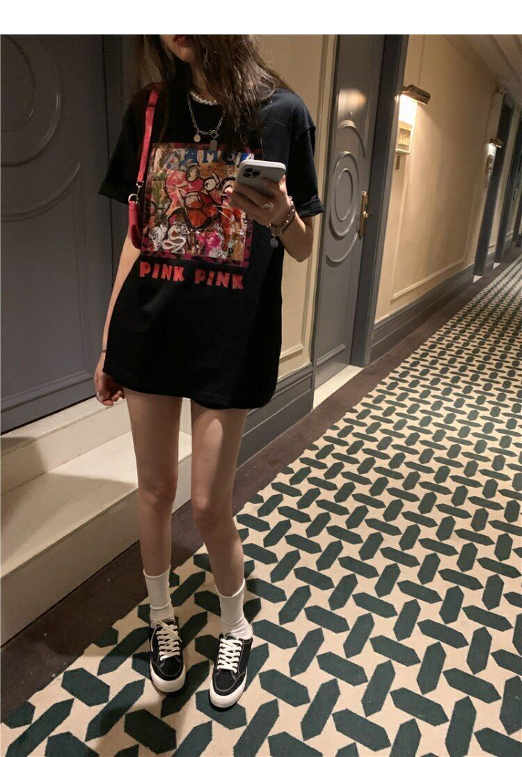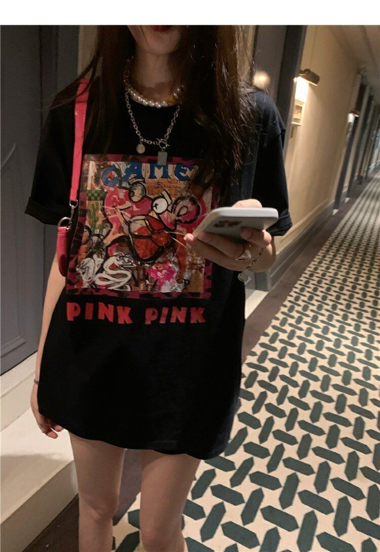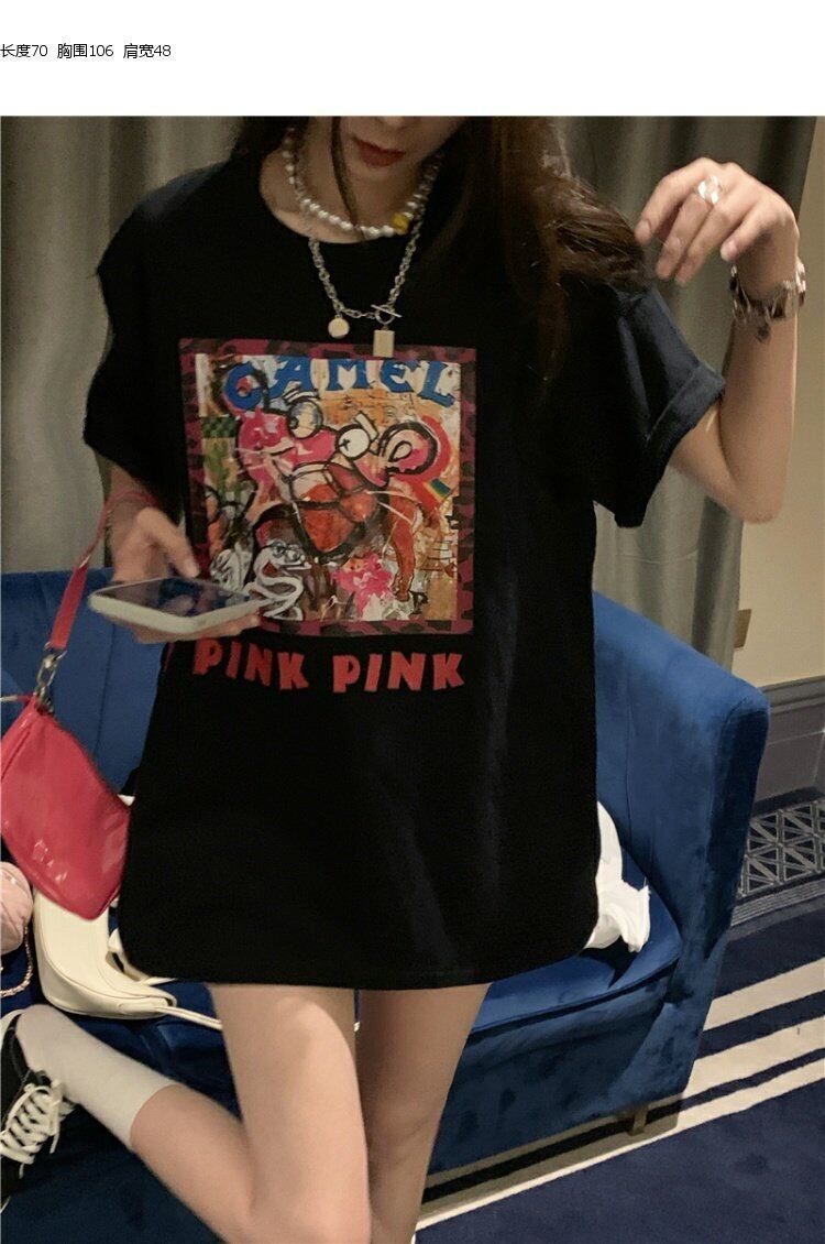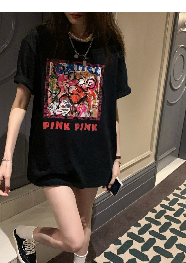 NEWTシャツシャツ レディーススタンダードプリントトップス ルーズ夏服ブラックカジュアルゆったり レトロ 夏物 MONROE4294168830