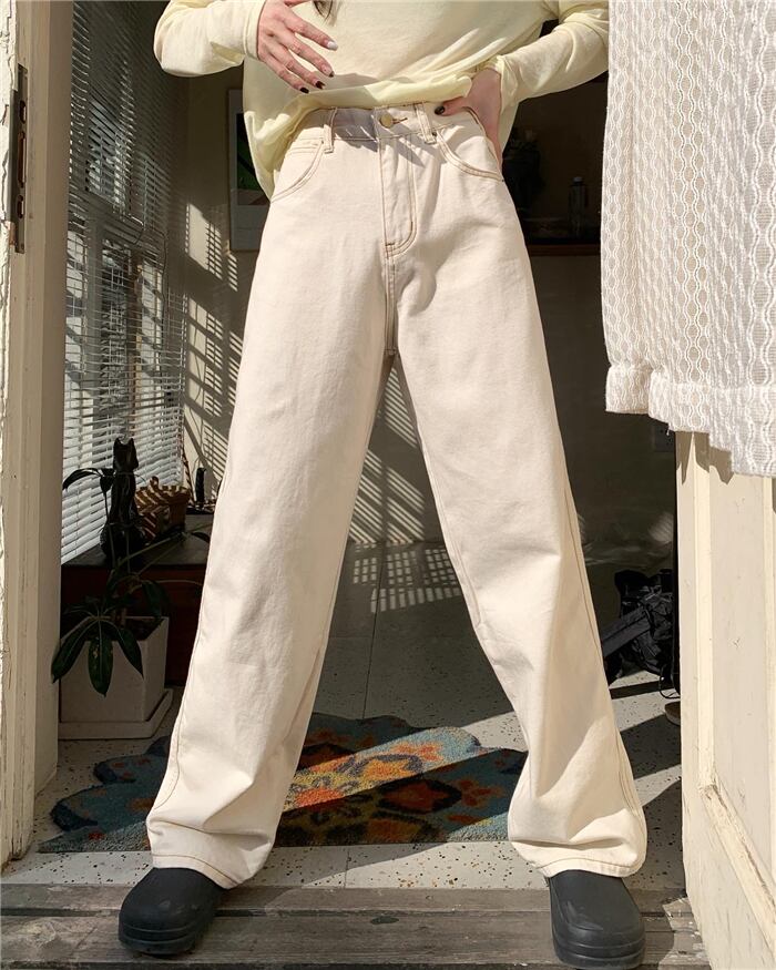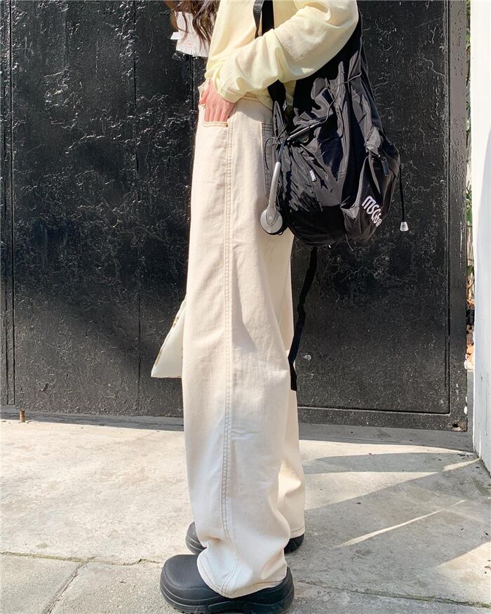 ホワイトハイウェストウェストジーンズ 夏服韓国ファッションスタイルパンツ ルーズ薄手ワイドレッグ 夏物 ワイドパンツ ウエスト MONROE67060244493