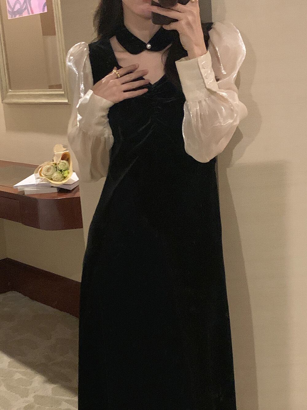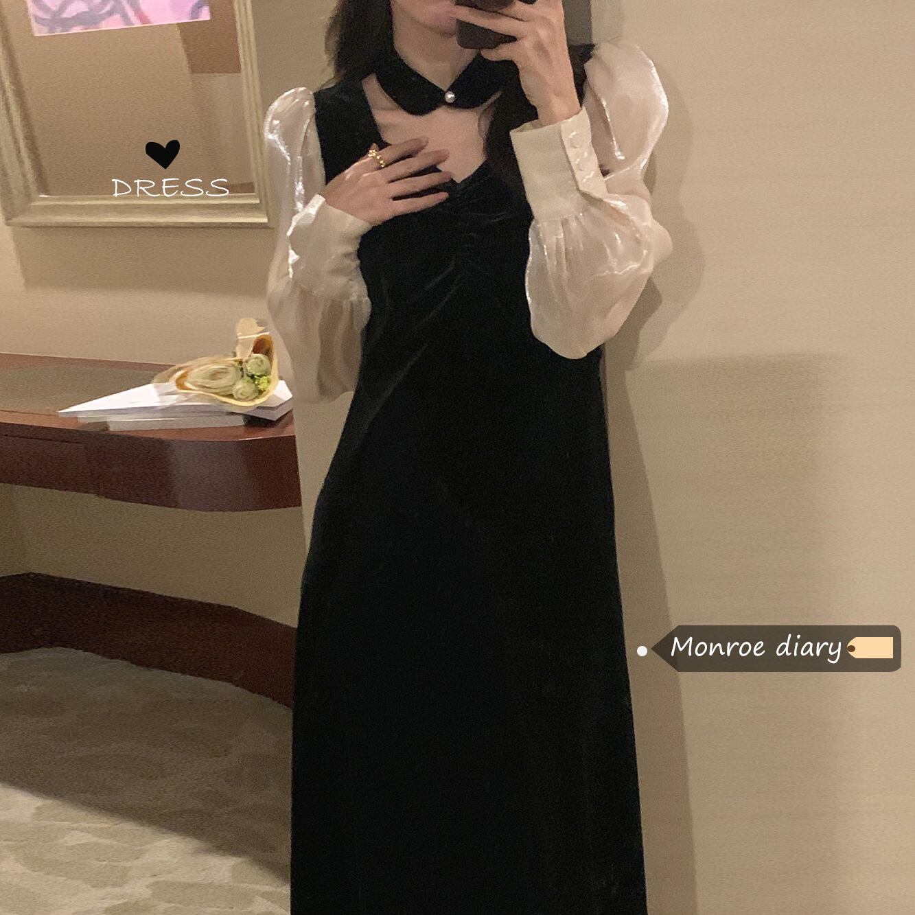 ブラックワンピーススプリング秋物コート ゆったりスカート ロング 春物 オータム MONROE64055216523