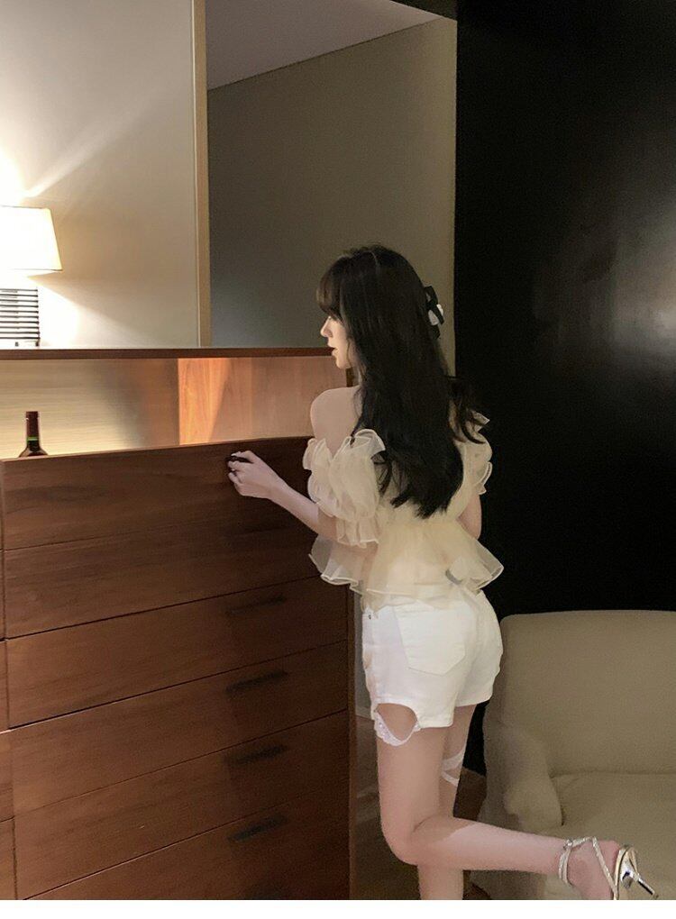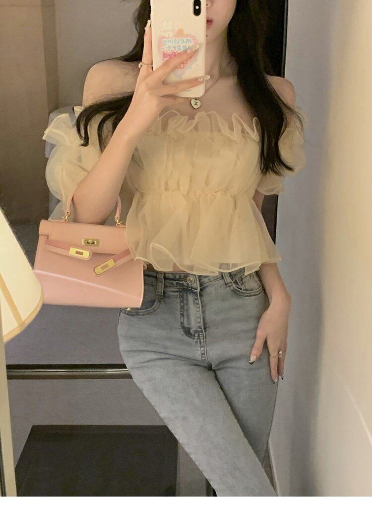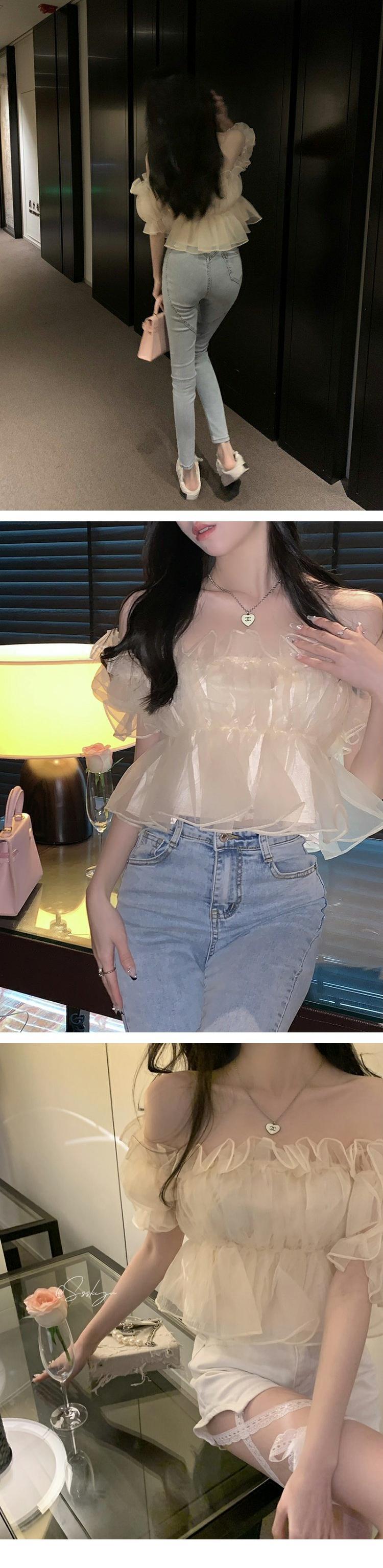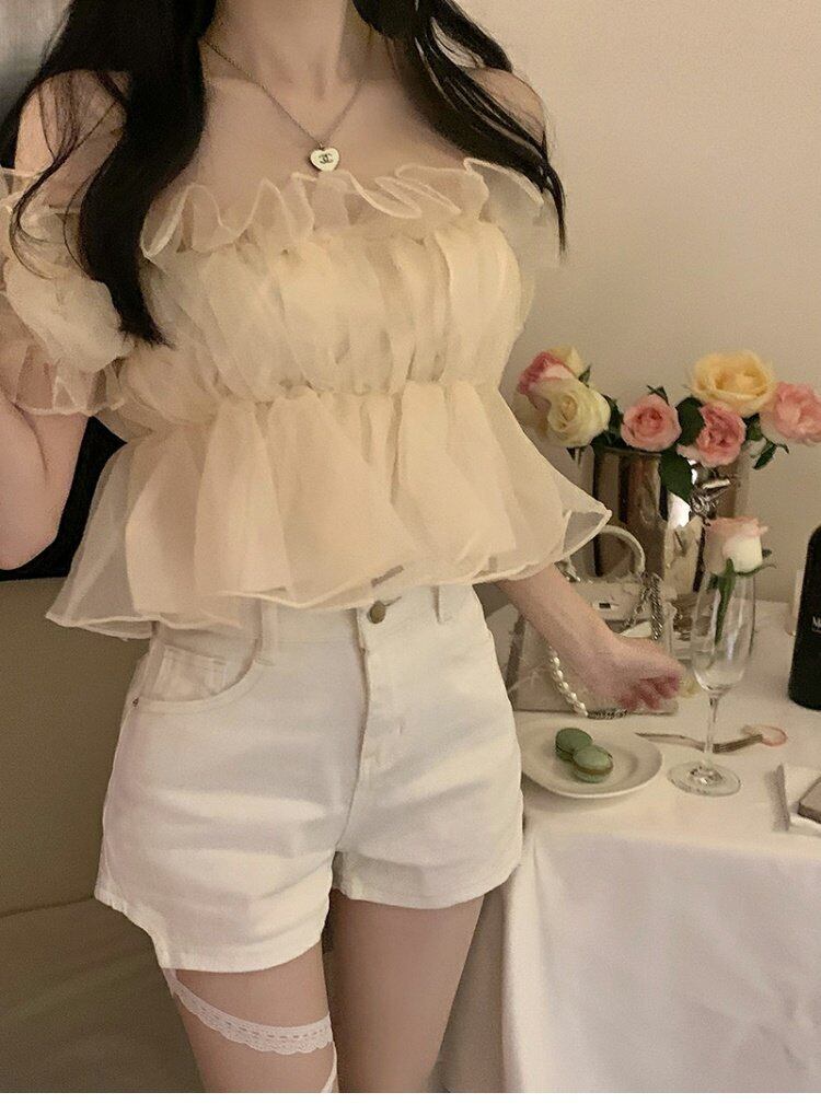 ワンショルダーシフォンシャツ スプリングショートトップス ストリート 大人ガーリー スウィート キュート カジュアル 春物 MONROE26990416033