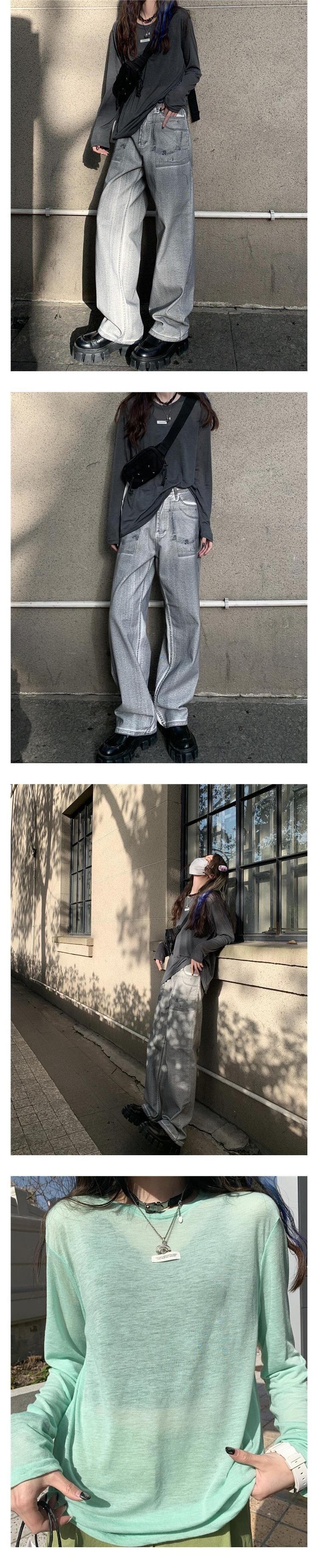ルーズ長袖スリーブTシャツシャツ ゆったりスプリンググリーントップス ロング 春物 MONROE63115037635
