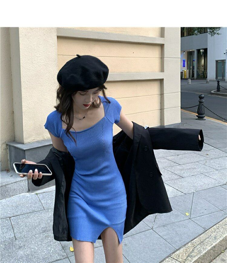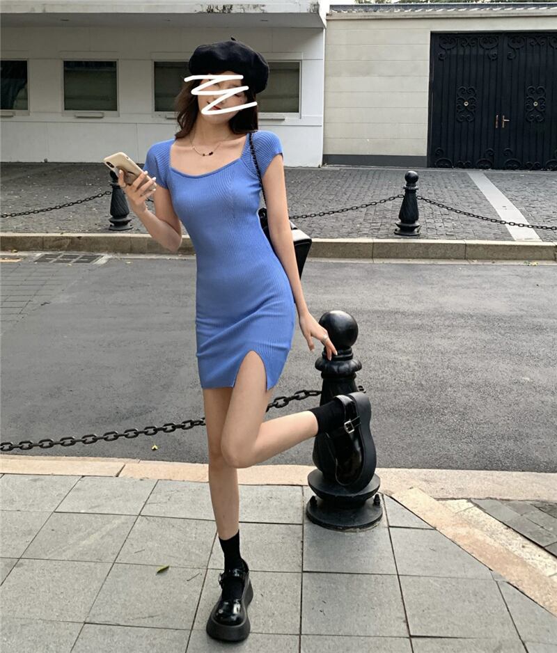 ニットワンピーススプリングスリットウェスト薄手スカート 春物 ウエスト MONROE39765260352