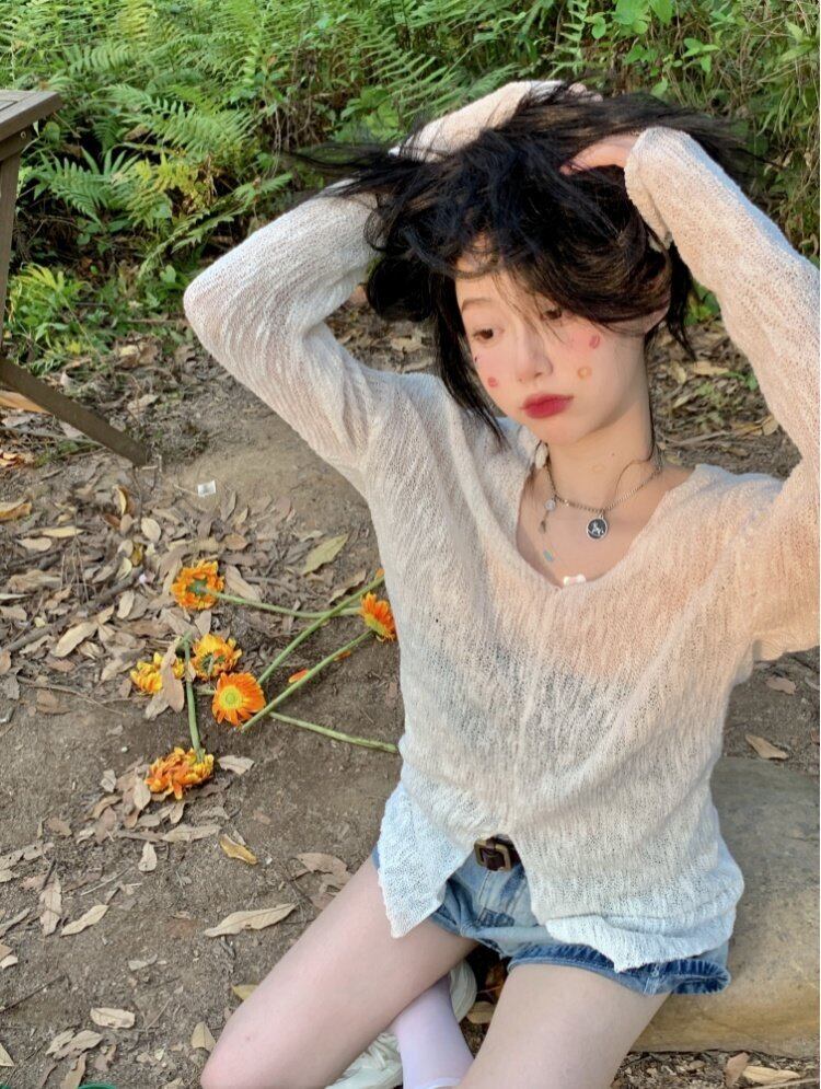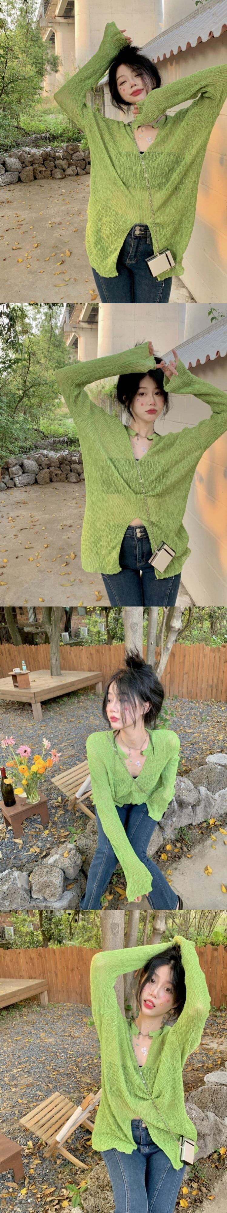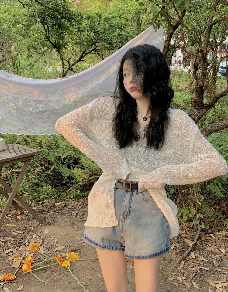 Vネックセーター スプリング薄手コート スリムフィットトップス ロング 春物 長袖 MONROE27120969859