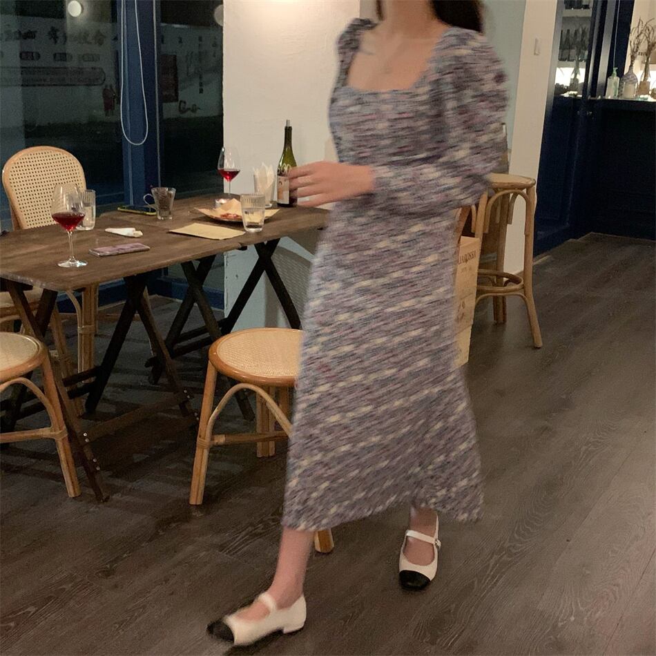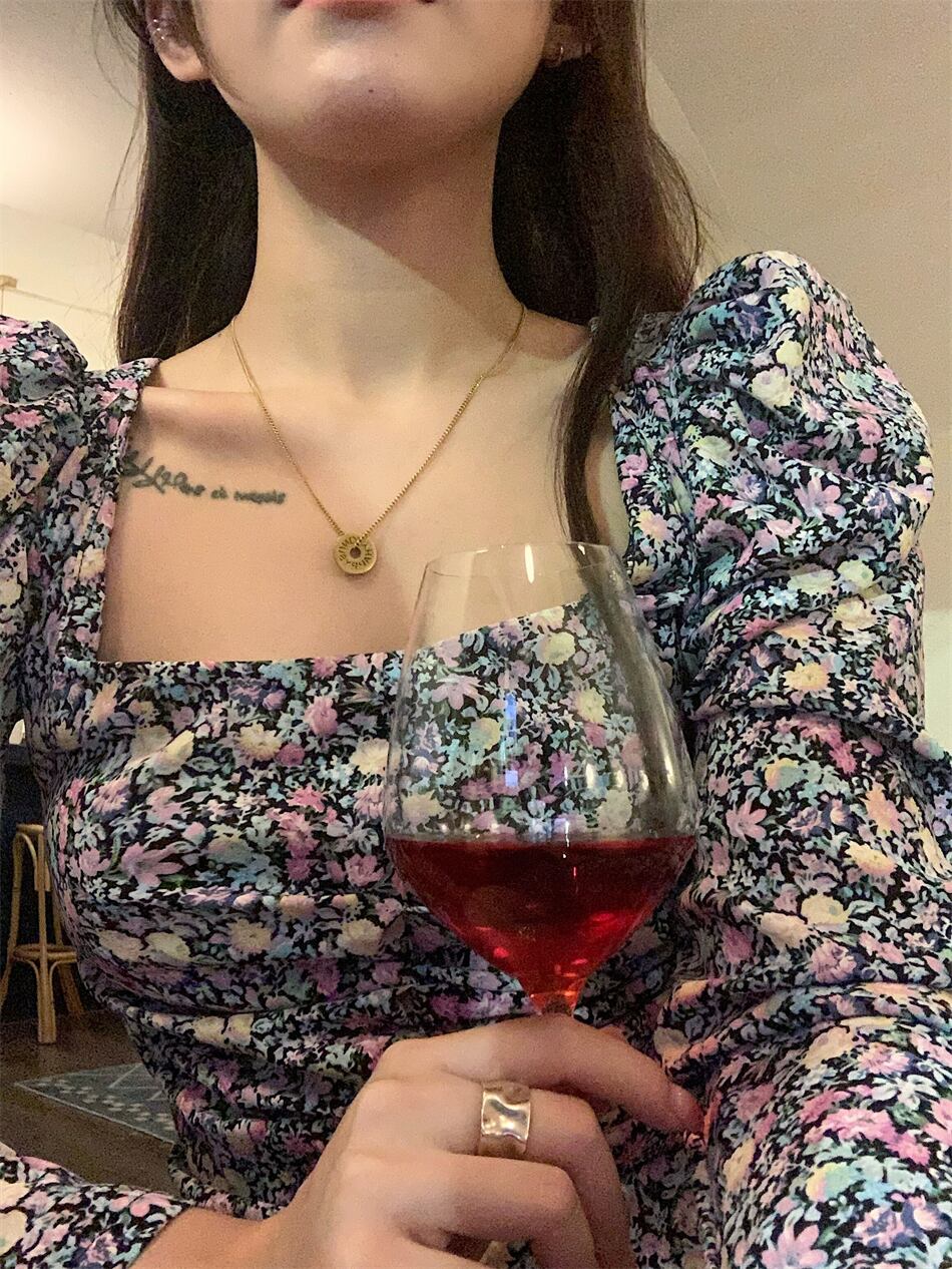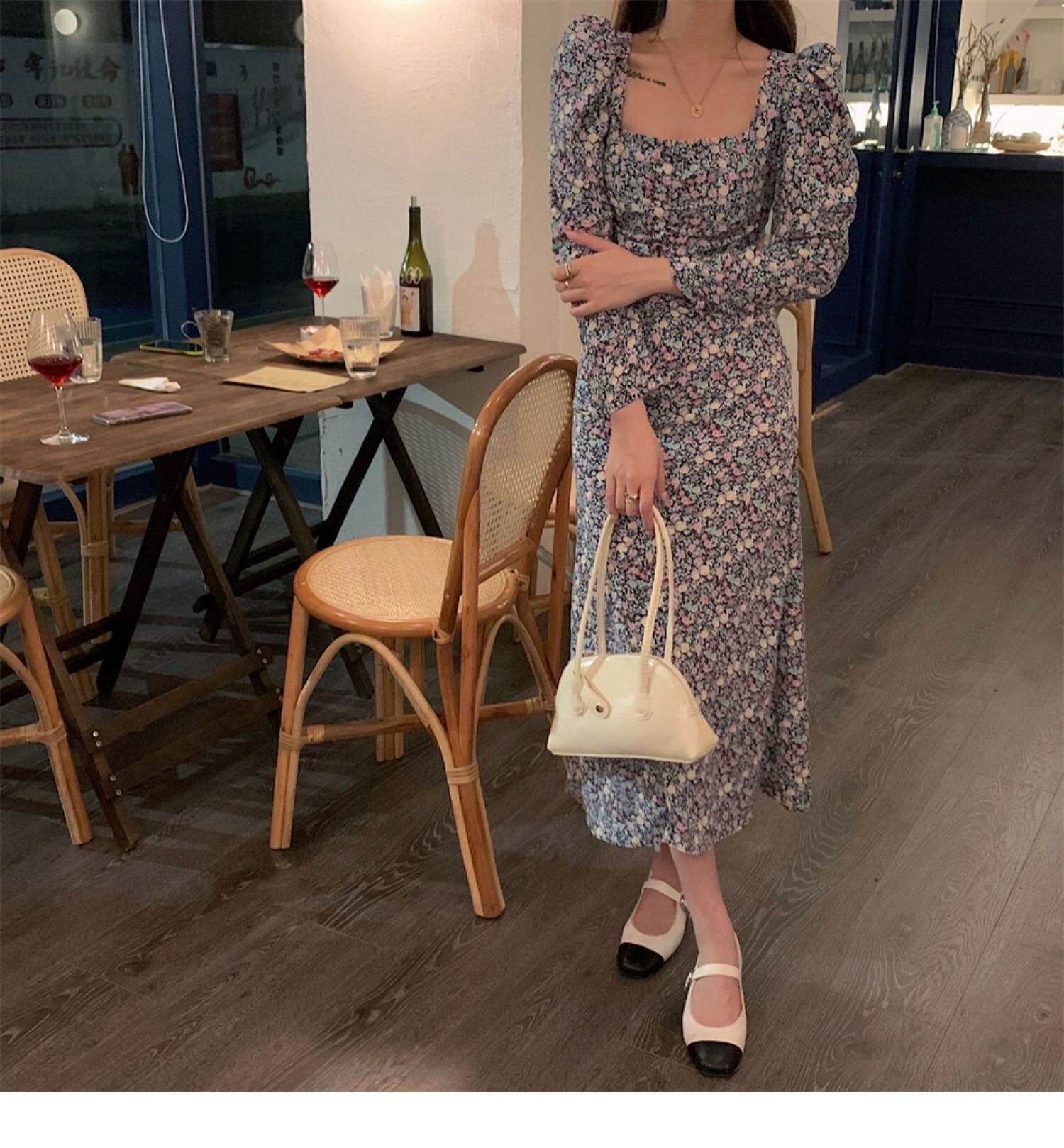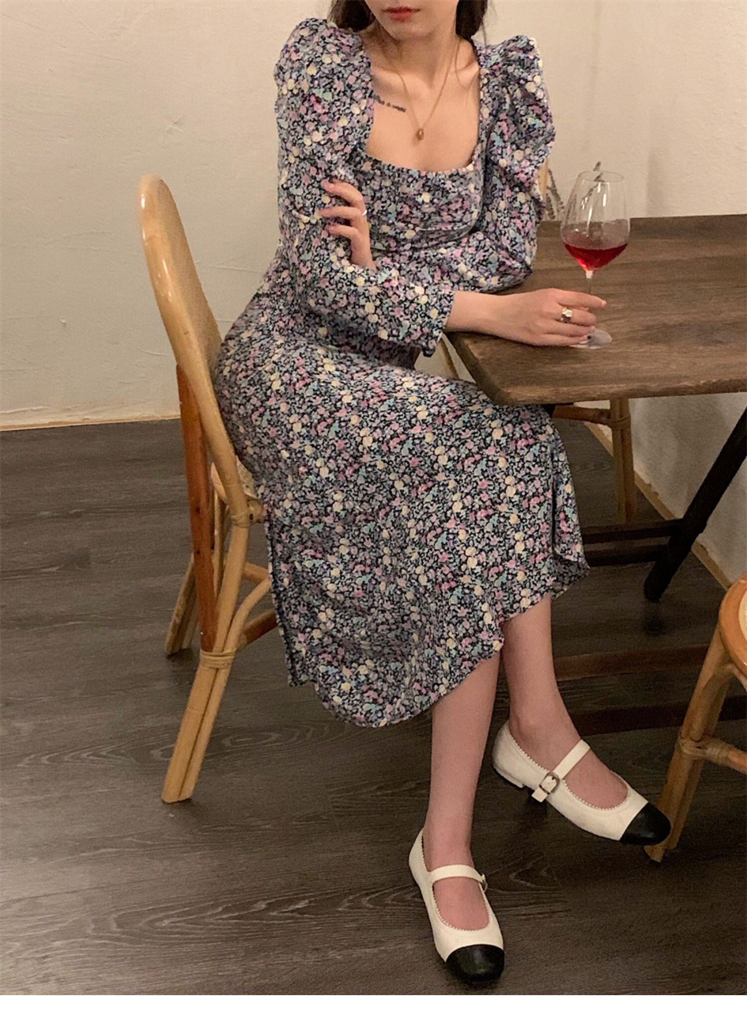 スプリング秋物カラーストラップ 薄手フローラルワンピース 春物 オータム 花柄 スクウェア MONROE12318654103