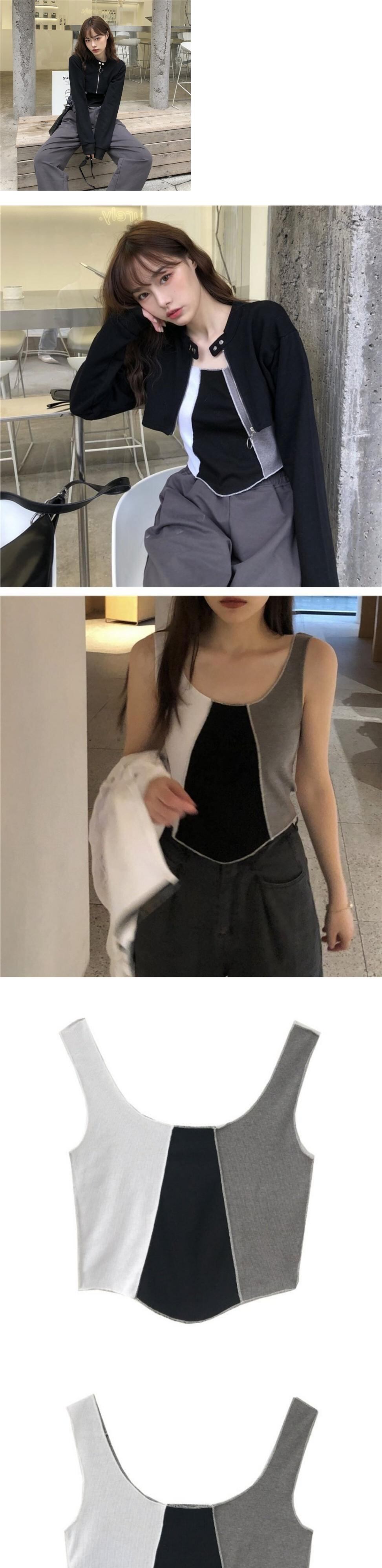 色:ホワイトトップ,グレートップ,ブラックトップ,黒と白のグレーのベスト