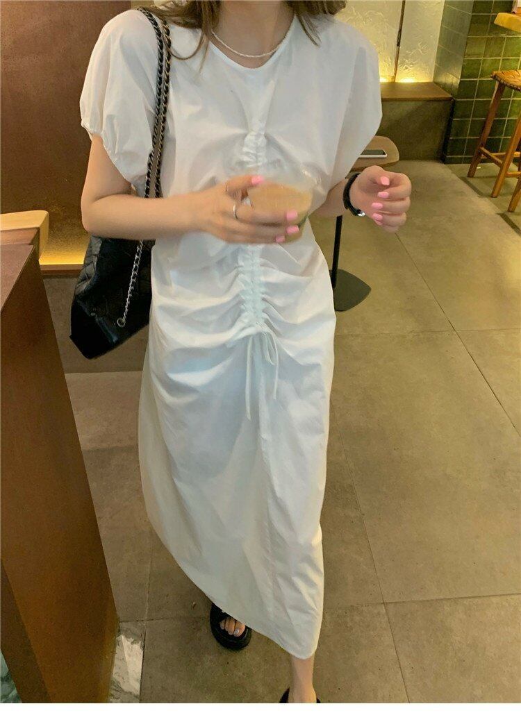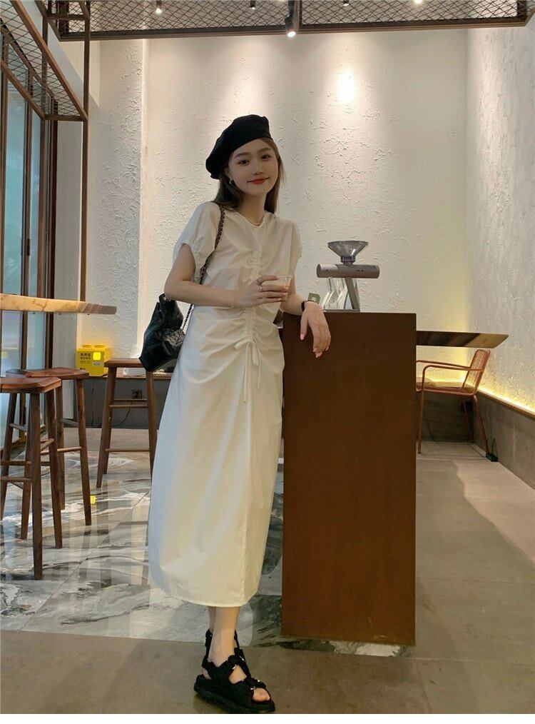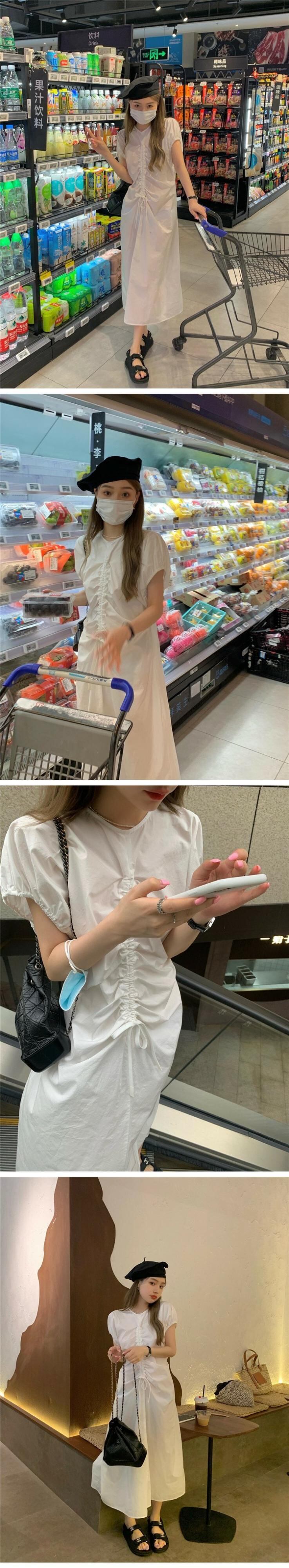 ホワイトワンピーススプリングウェスト薄手スカート 春物 ウエスト ミドル丈 MONROE47439584868