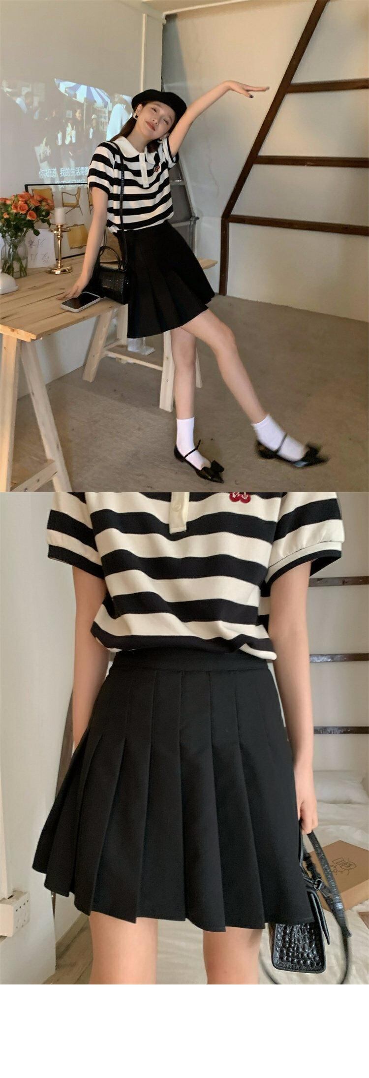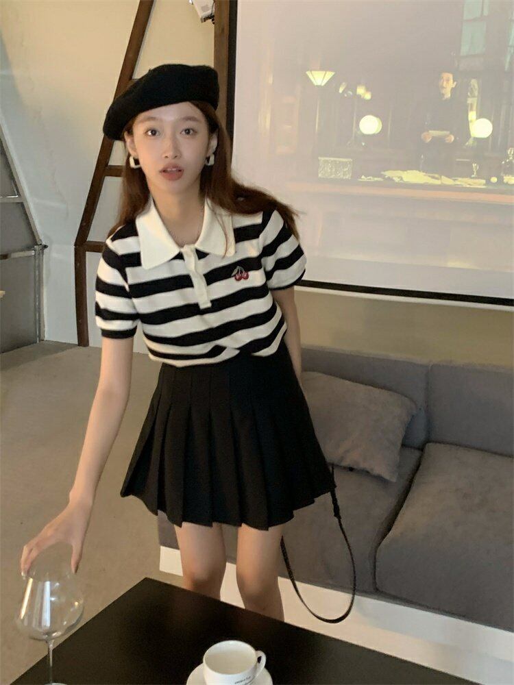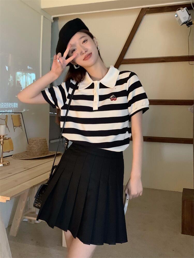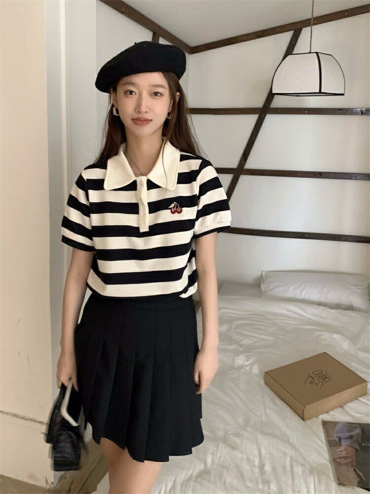 スタンダードカラーTシャツシャツ 夏服ストライプ レトロ 夏物 MONROE81310147752