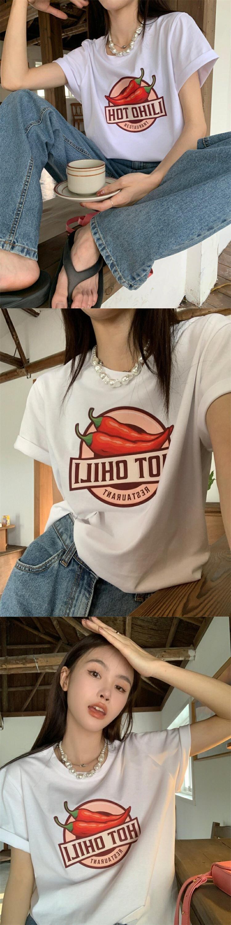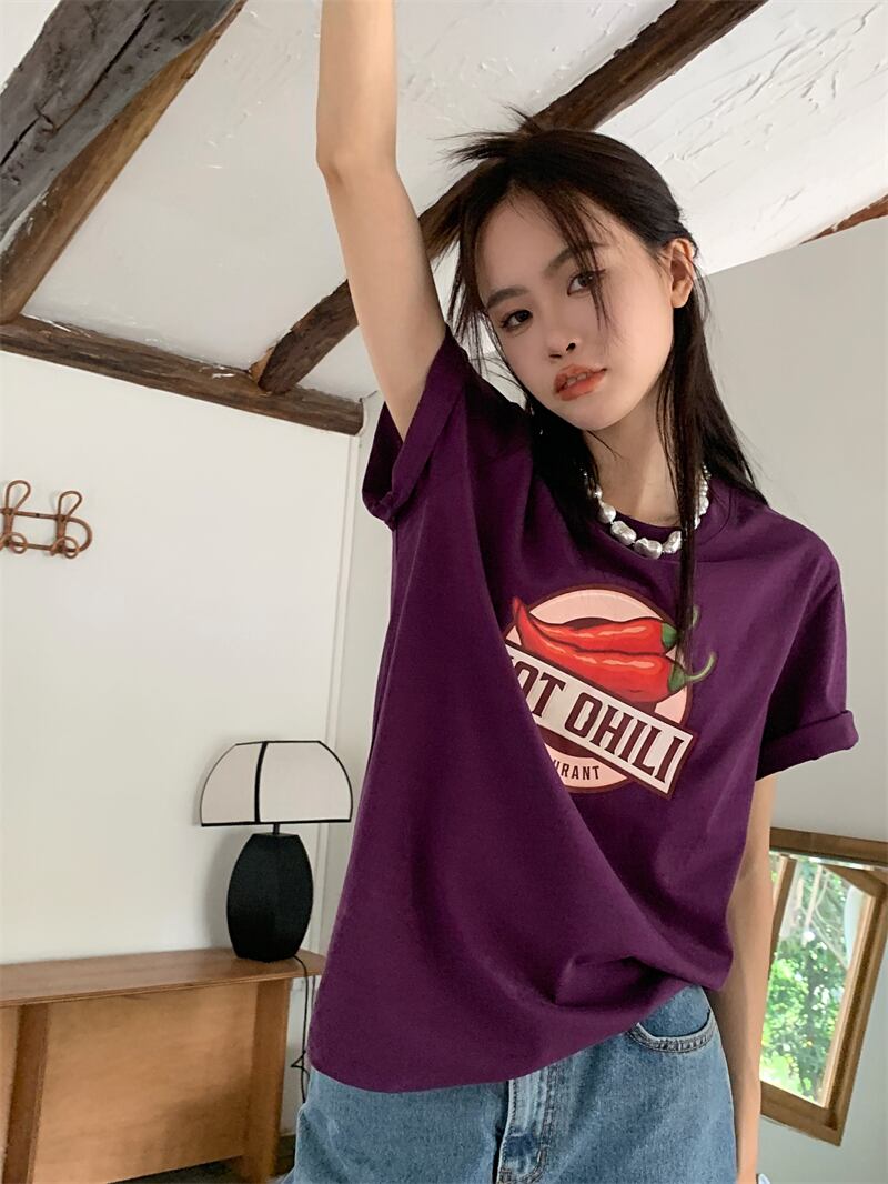夏服プリントTシャツシャツ ルーズ薄手トップス カジュアルゆったり 夏物 MONROE919416677