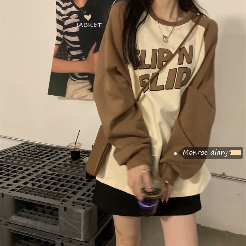 Tシャツシャツ スプリング秋物ゆったりルーズトップス NEW ロング 春物 オータム 長袖 MONROE7549053092