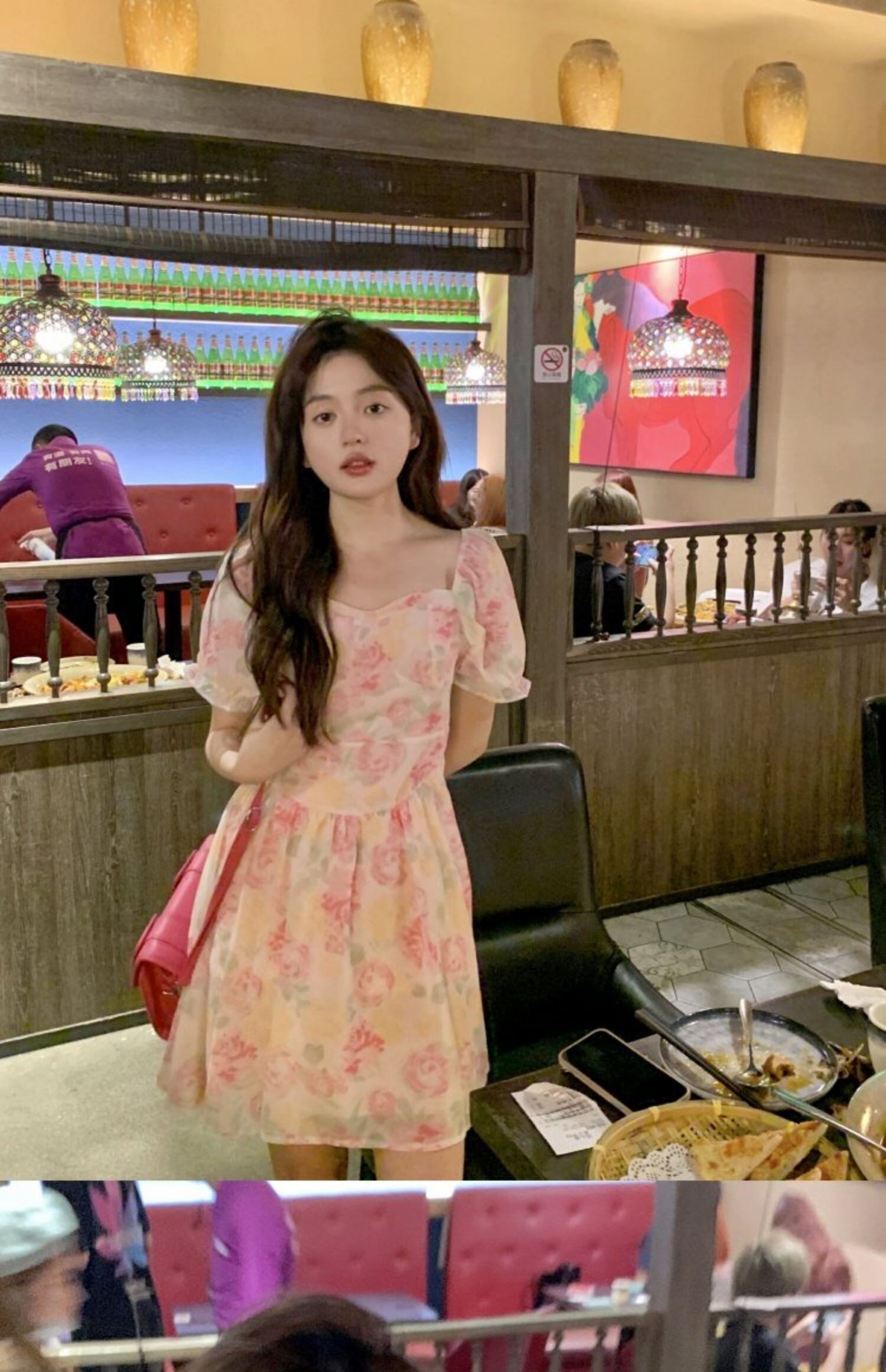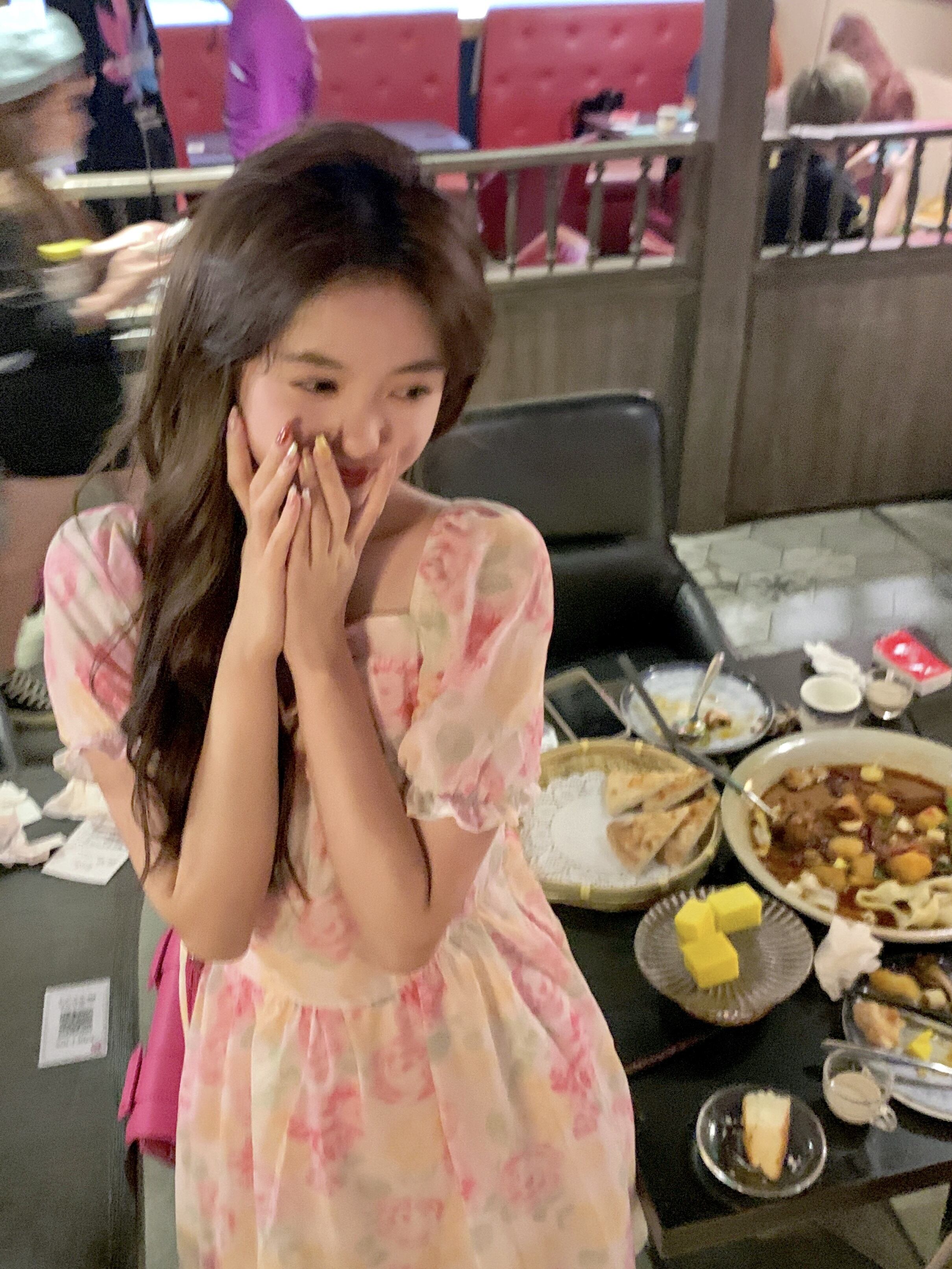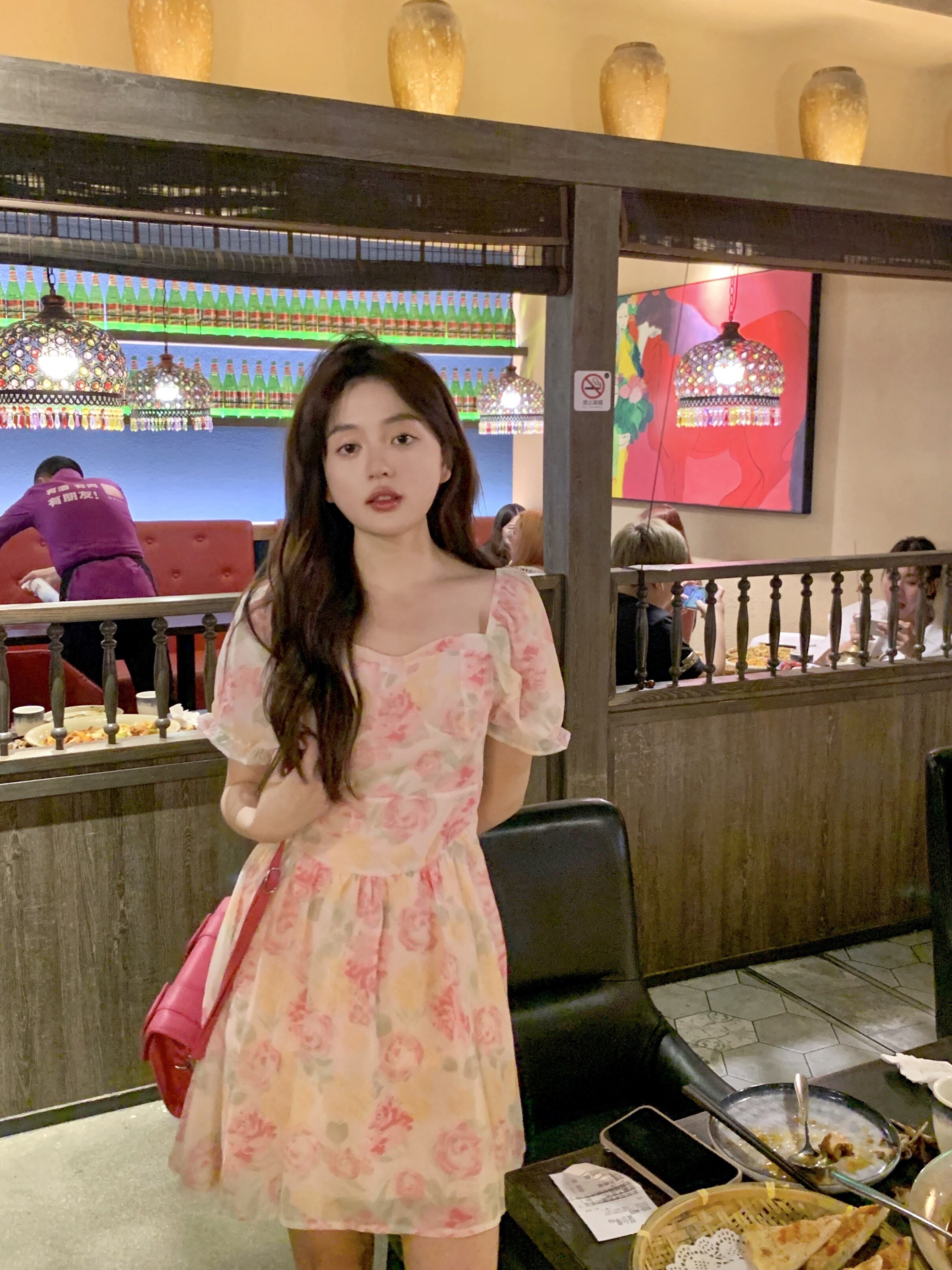 韓国ファッションワンピーススプリングウェスト薄手スカート 半袖スリーブ ショート ハーフスリーブ 春物 スクウェア ウエスト MONROE52430570115